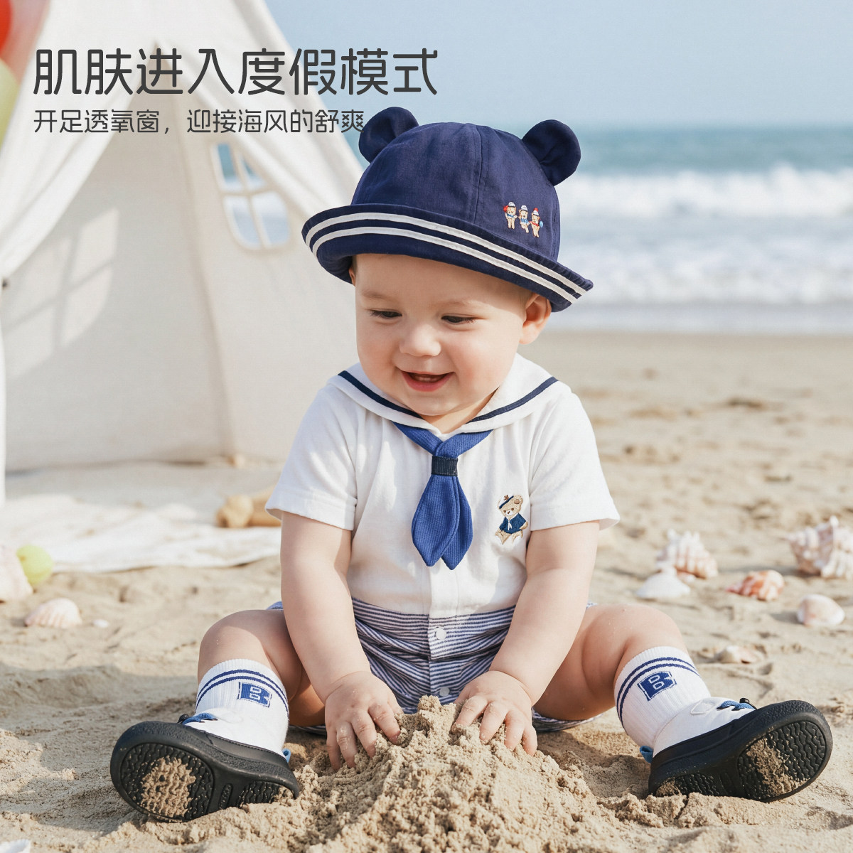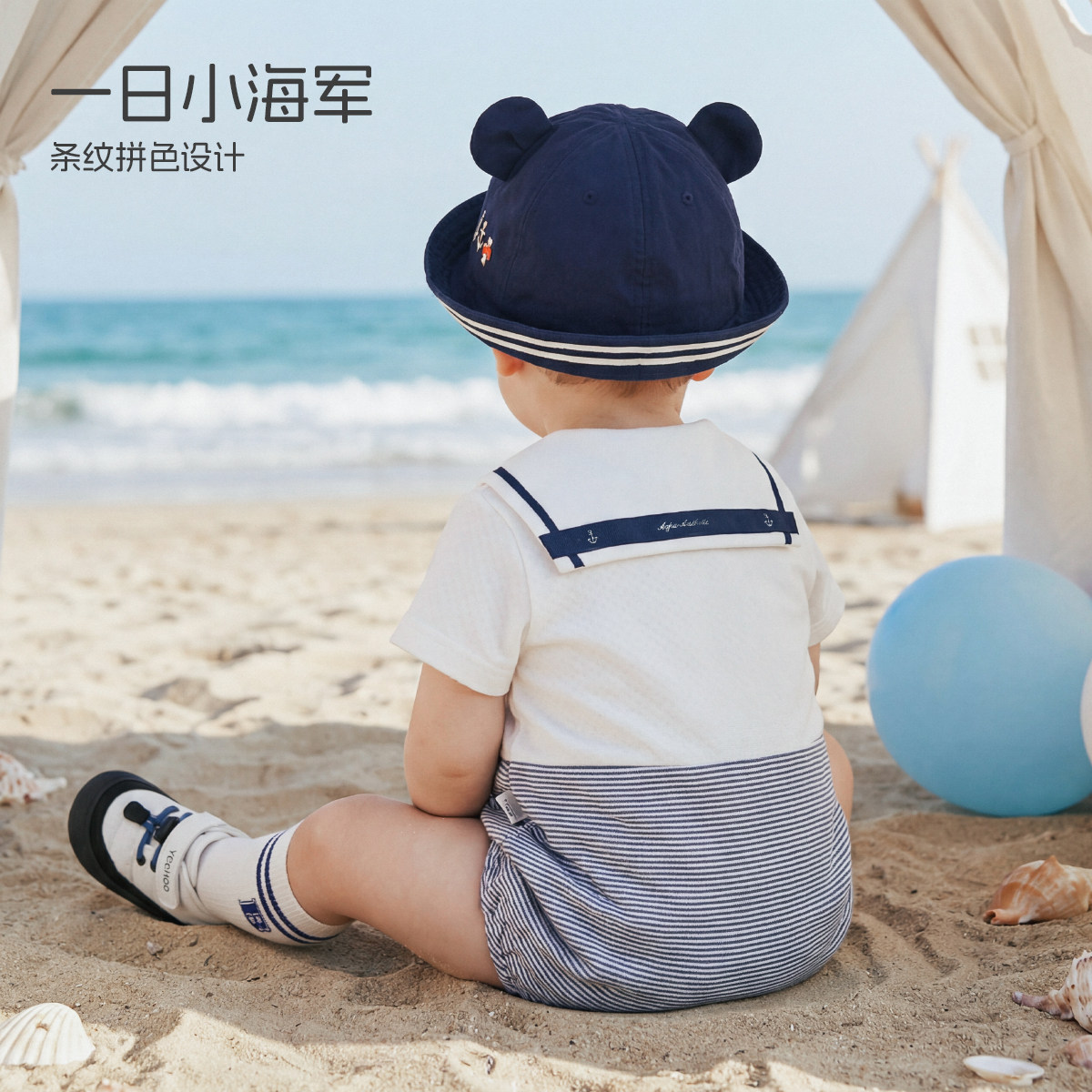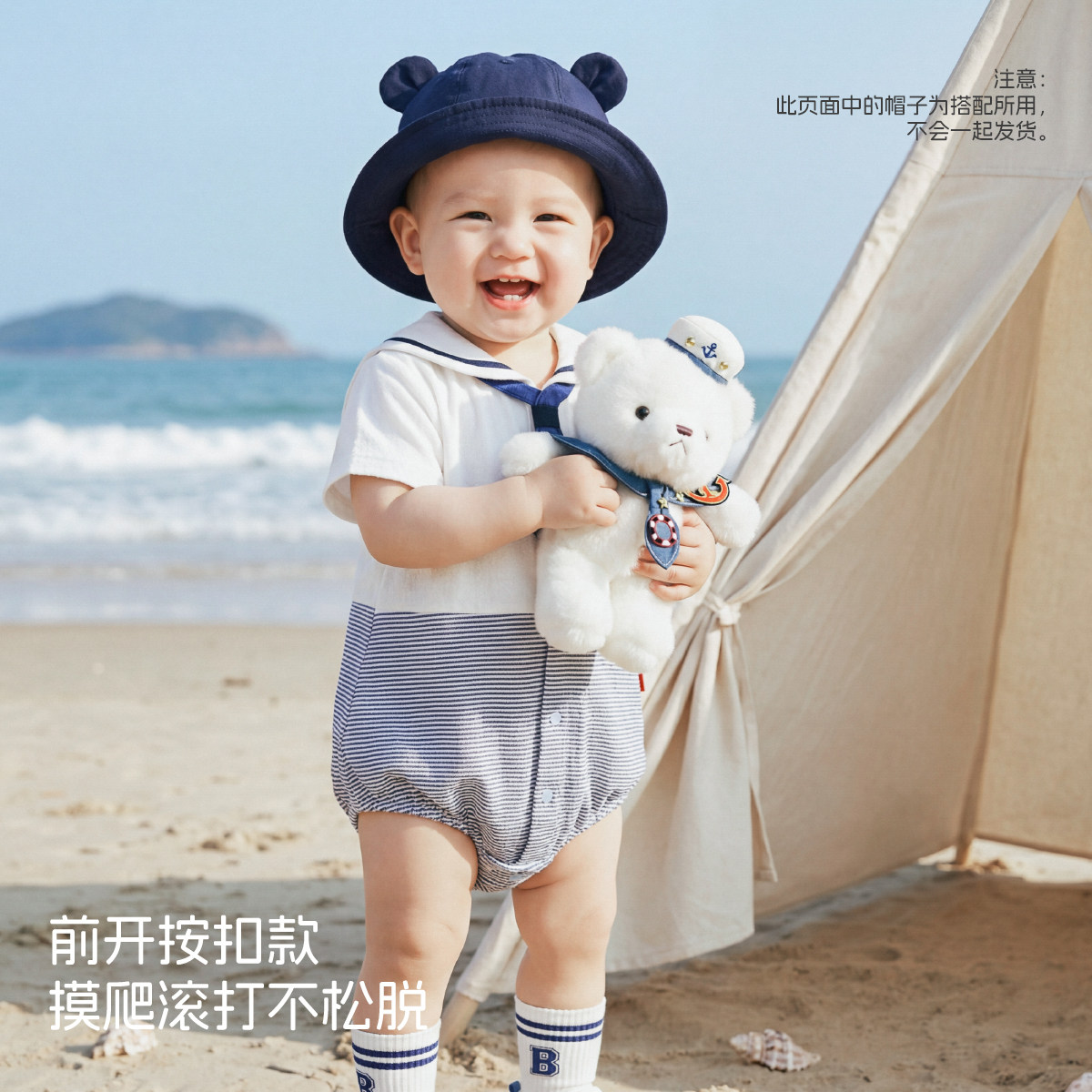 【海上小熊】aqpa爱帕短袖前开包屁连体衣春夏新品连体衣哈衣