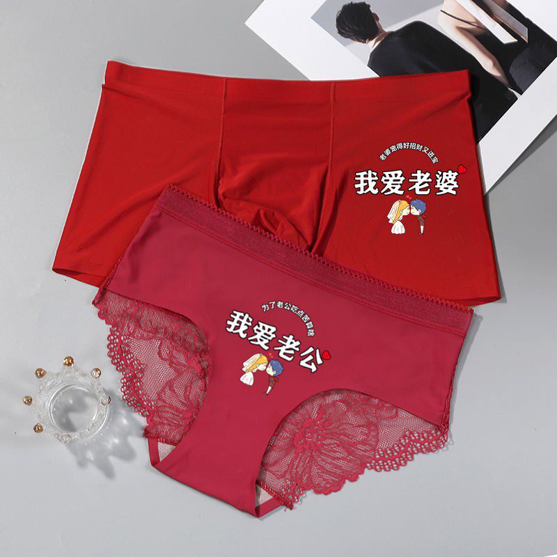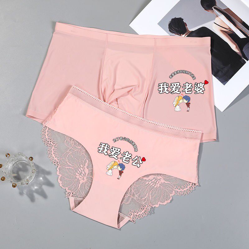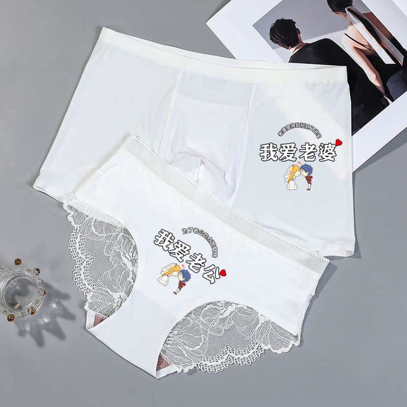 【情侣内裤2条装】性感我爱老婆蕾丝边透气诱惑薄款无痕