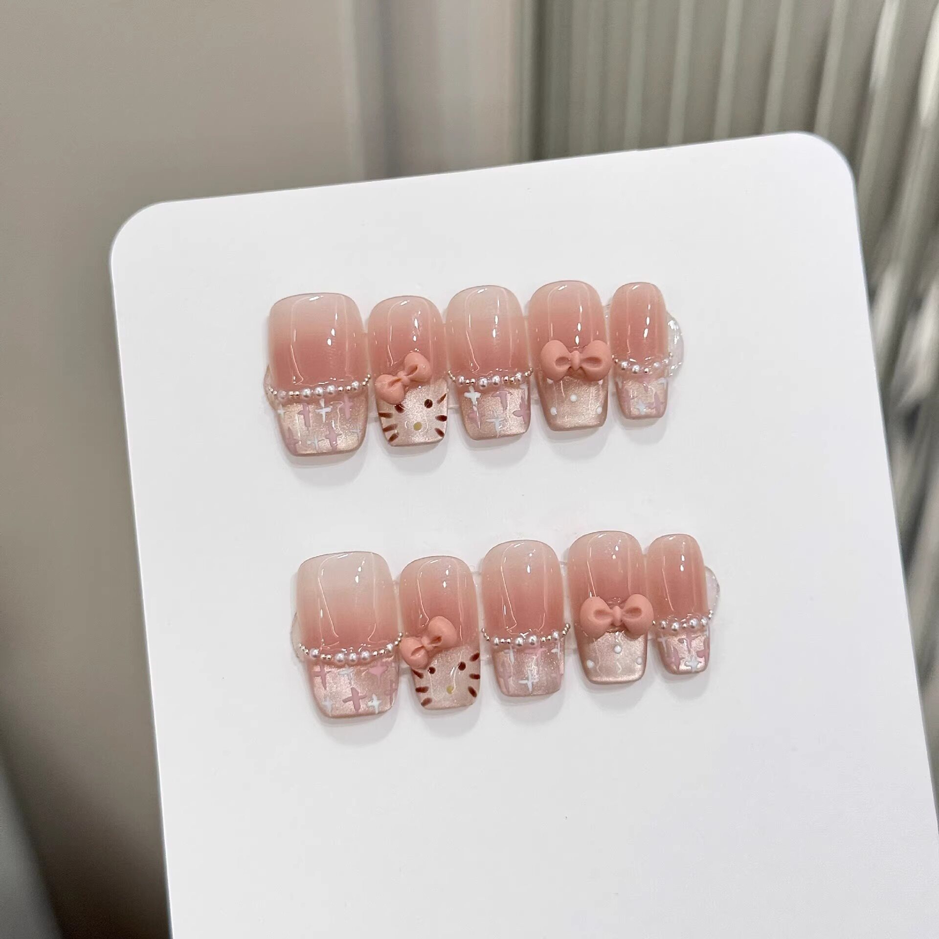 儿童穿戴甲女童2026新款高级感指甲贴儿童女孩美甲贴纸甲片8岁12岁夏日穿戴甲短款学生党自粘防水指甲装饰