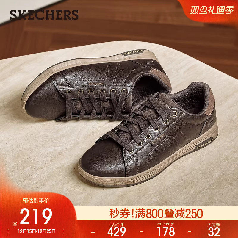 斯凯奇2025新款男鞋复古商务鞋舒适轻质运动休闲皮鞋平底板鞋