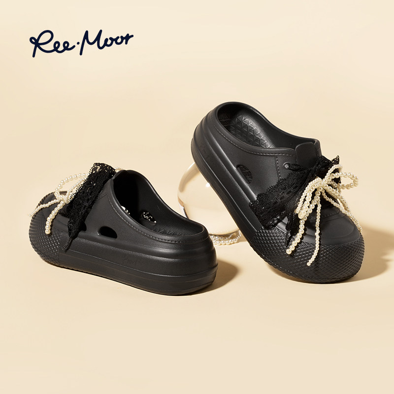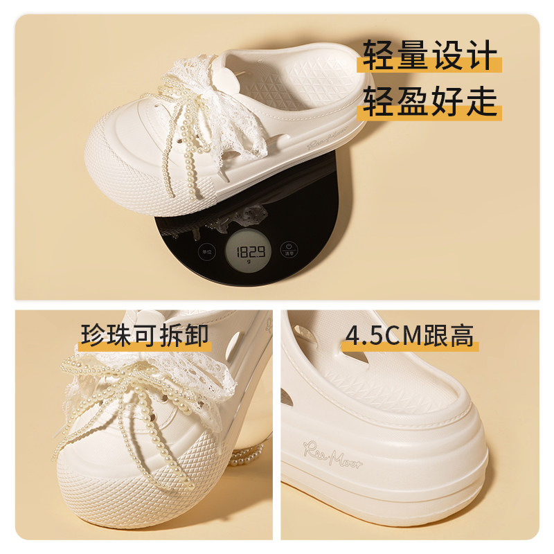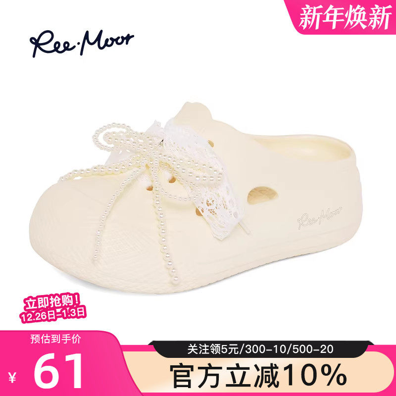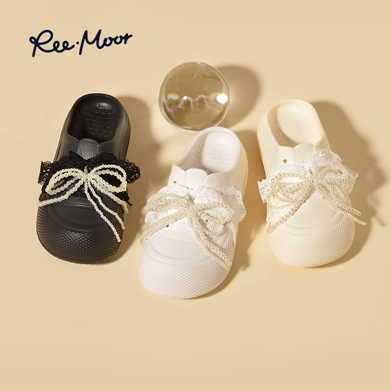 reemoor2025夏新款外穿包头拖鞋珍珠蝴蝶结厚底休闲一脚蹬睿慕