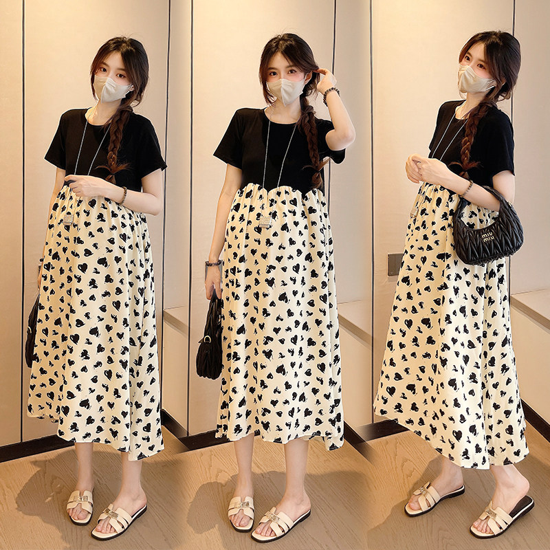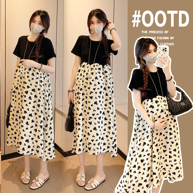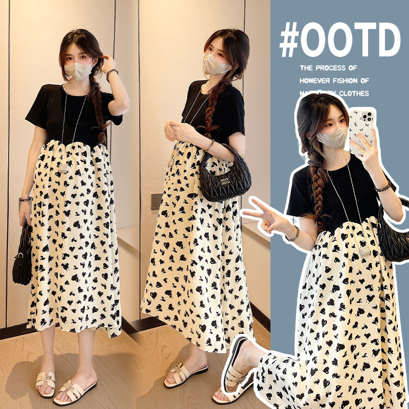 婧麒孕妇连衣裙夏装2026新款假两件中长款裙子休闲宽松显瘦孕妇装