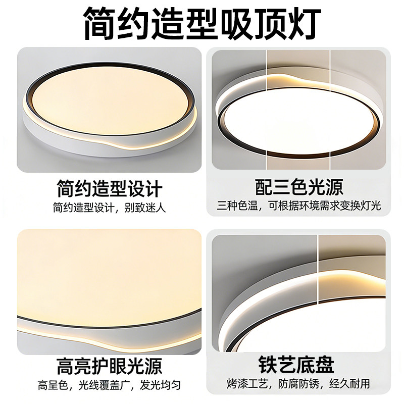 包安装全光谱护眼led吸顶灯超亮主卧卧室房间卫生间出租房免安装