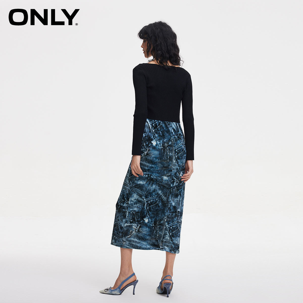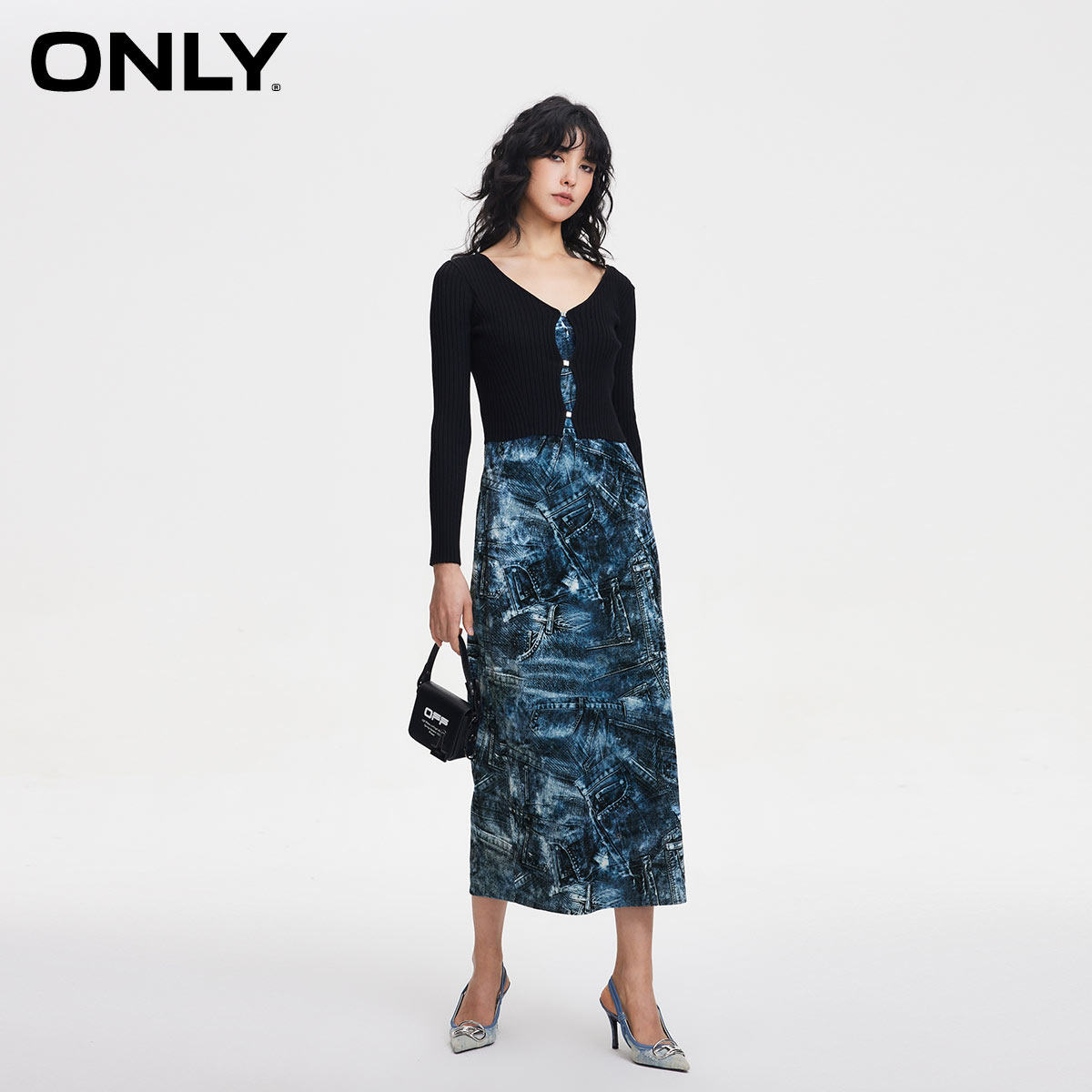 【ONLY奥莱】春季新款时尚印花修身吊带中长款套装连衣裙女