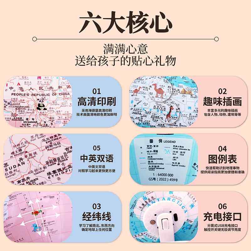 双子座AR地球仪20cm触控灯教学推荐专用学生儿童节礼物地球仪