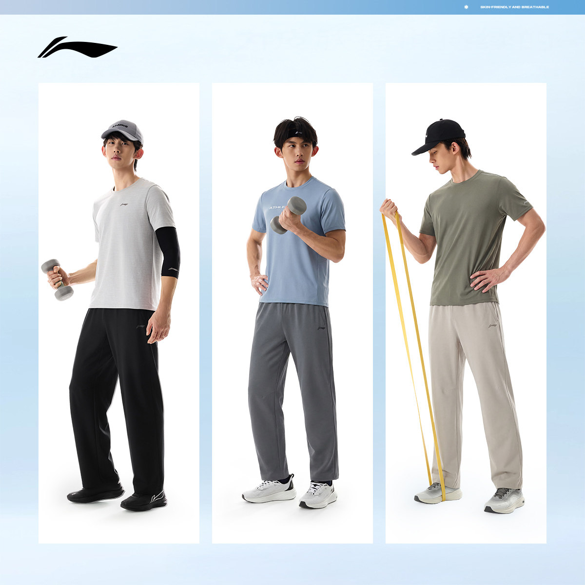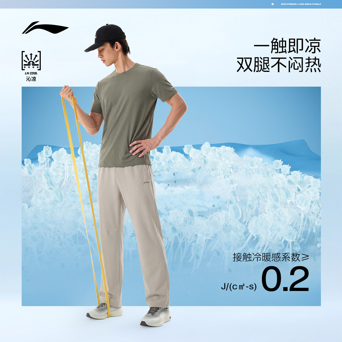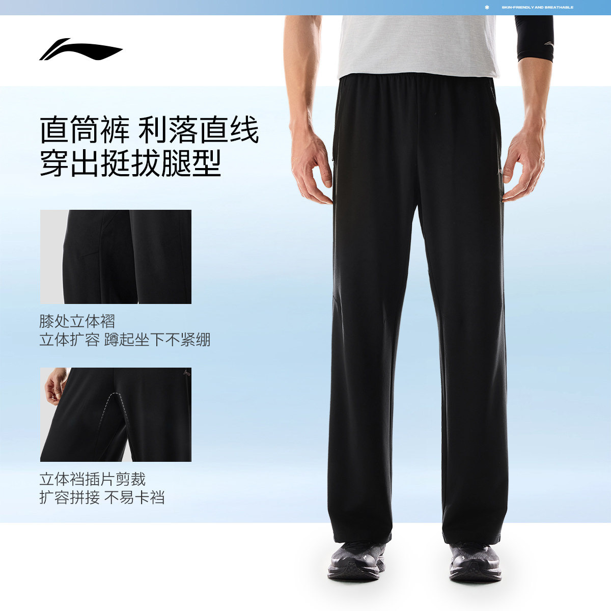 李宁卫裤男2026新款健身跑步长裤夏季反光直筒黑色裤子针织运动裤