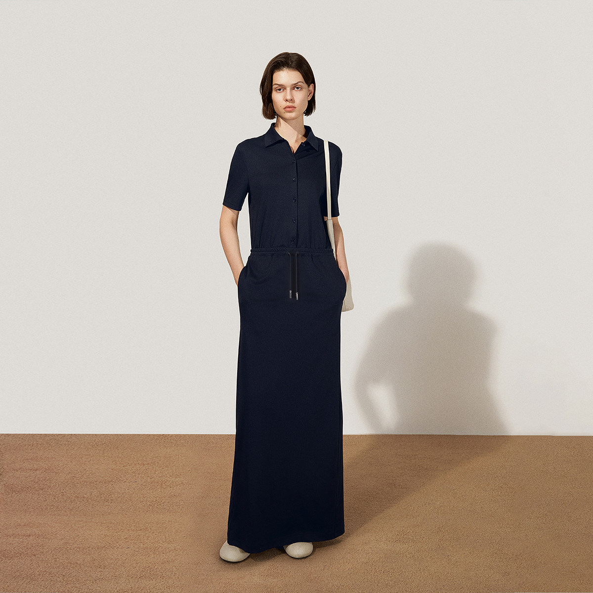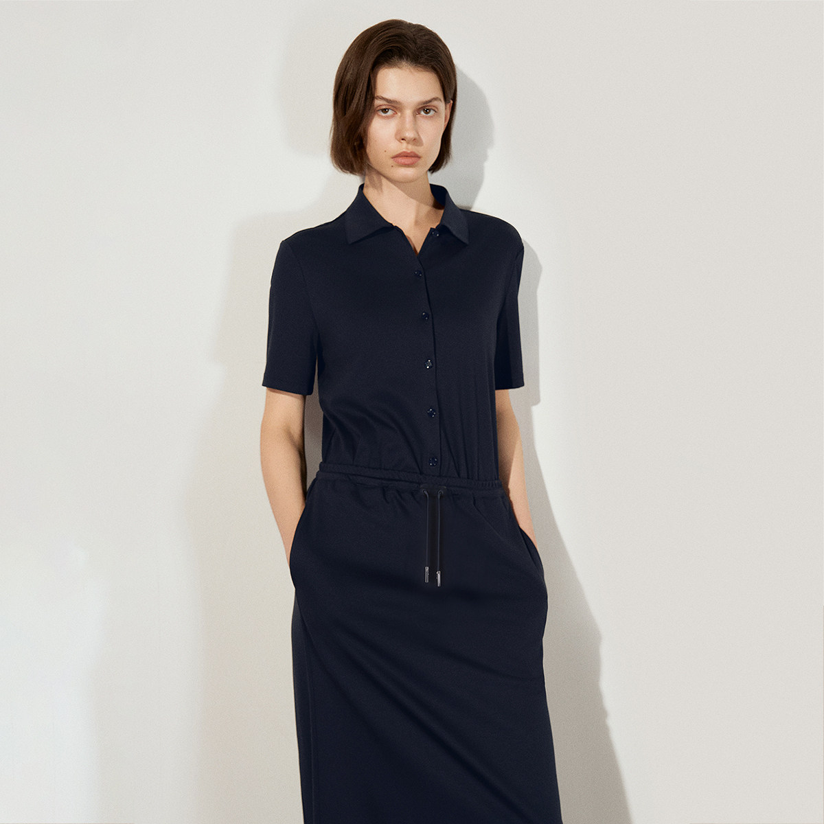 【季末折扣】欧时力 假两件连衣裙长裙翻领收腰淡人穿搭2025夏新