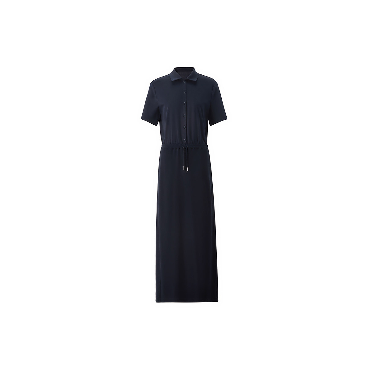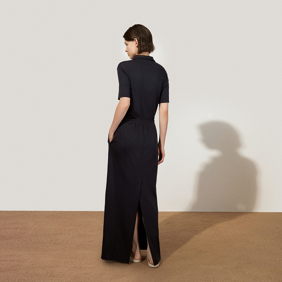 COCOBELLA简约气质黑色收腰极简风连衣裙女优雅短袖长裙FR3033-2