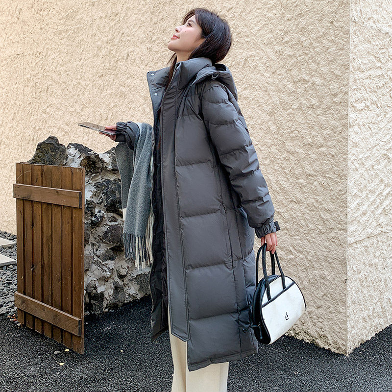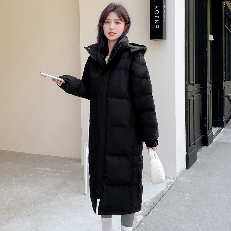 2025年新款羽绒服女中长款过膝加厚大码黑色中戏白鸭绒情侣外套潮