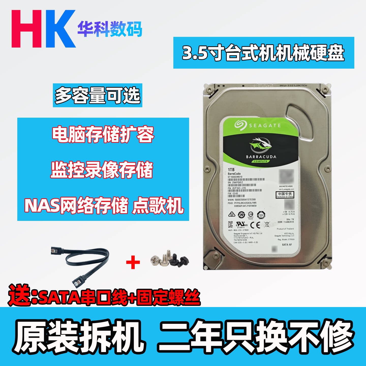 3.5寸 拆机机械硬盘 台式电脑 NAS存储 监控录像机点歌机通用SATA