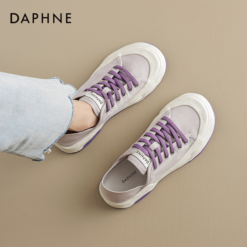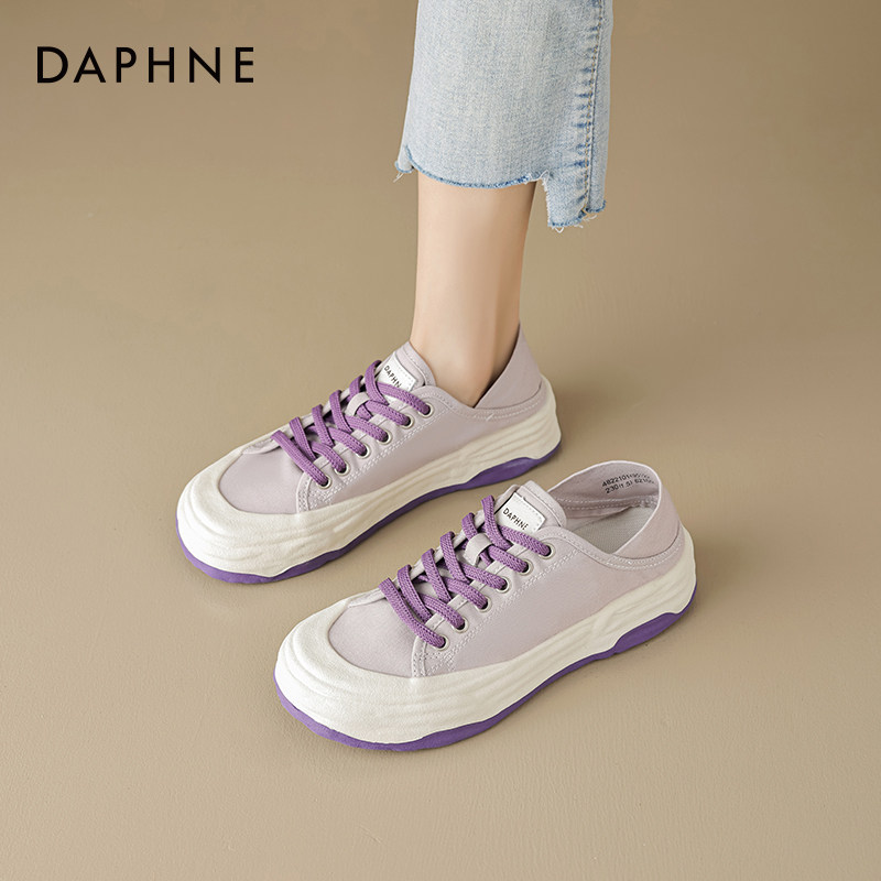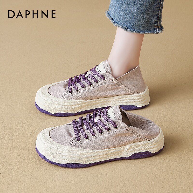 达芙妮平底帆布鞋女2026新款春季爆款两穿单鞋一脚蹬半拖小白板鞋
