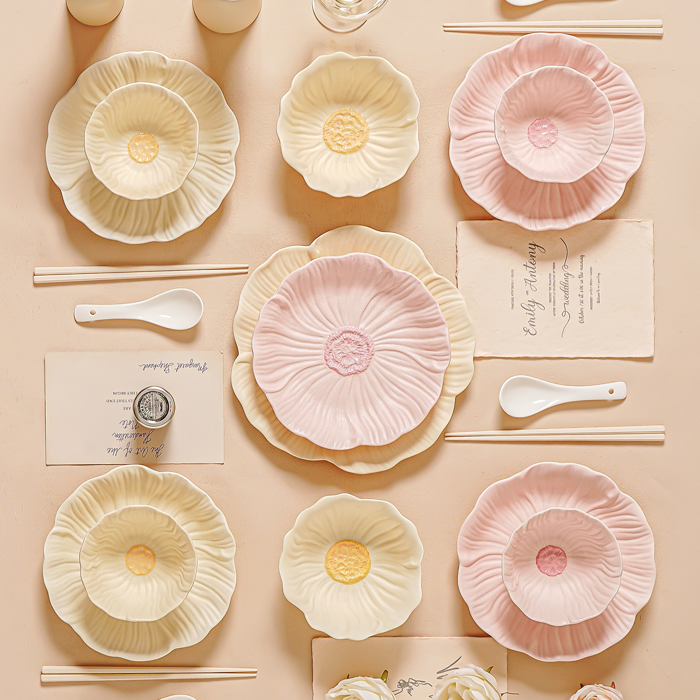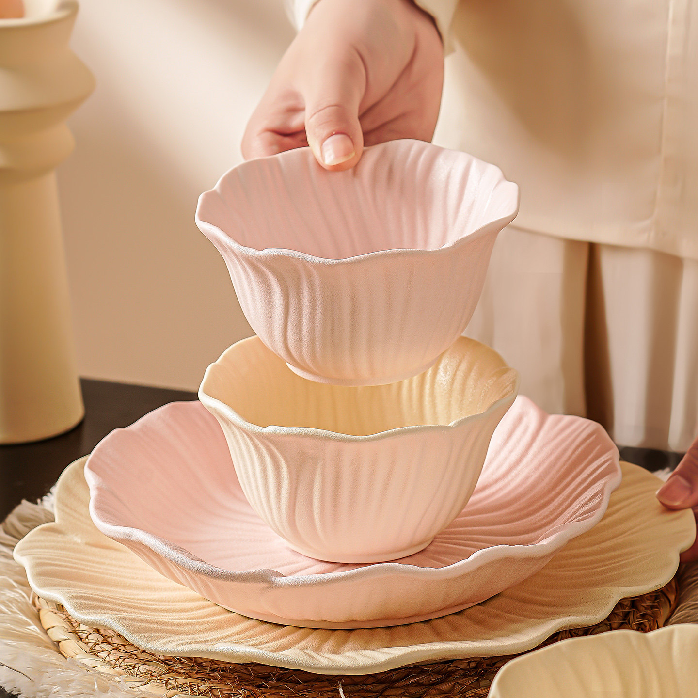 奶油风陶瓷碗家用卡通菜盘子可爱米饭碗汤碗釉下彩儿童餐具耐高温