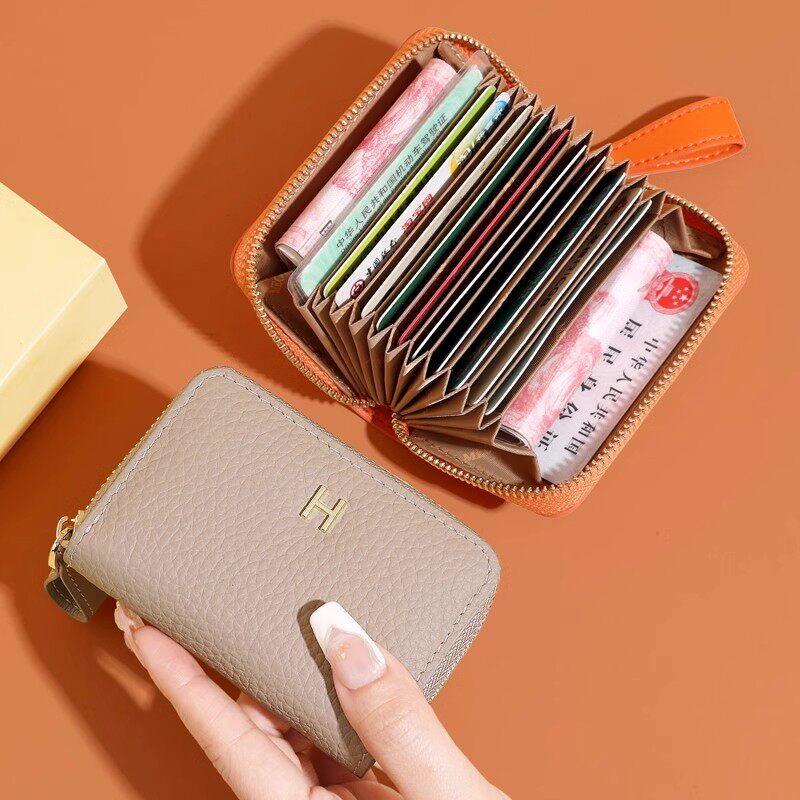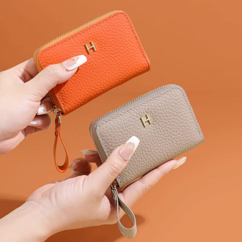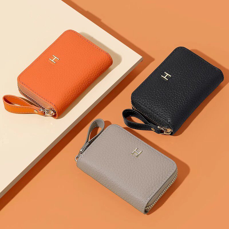 稻草人卡包女士新款证件女式牛皮小巧真皮拉链钱夹小众银行卡钱包