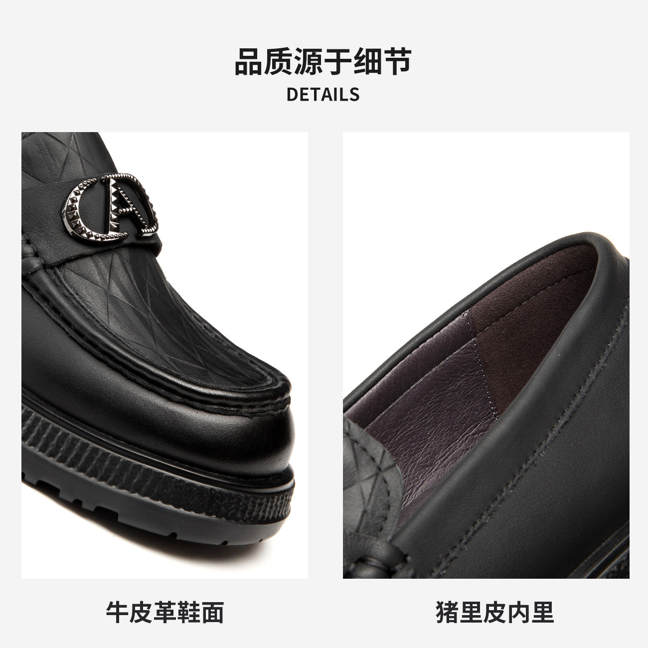 【轻量化增高】chioryn青润乐福鞋男士小牛皮厚底皮鞋休闲豆豆鞋