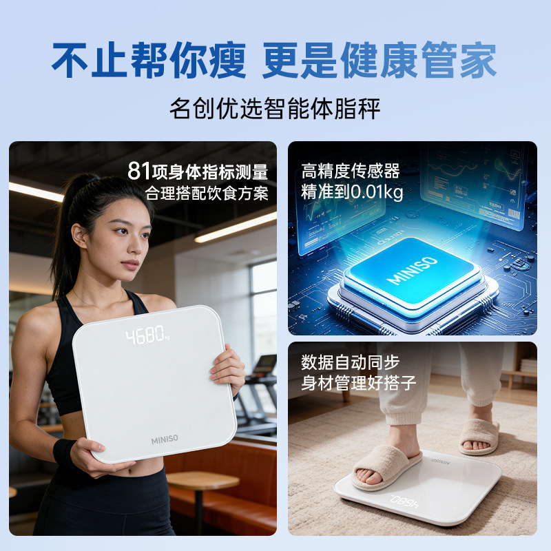 名创优品体重秤家用精准减肥专用电子秤智能体脂秤小型人体称重计