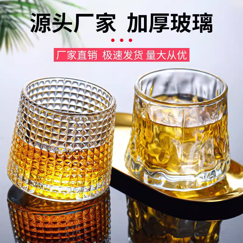 旋转玻璃杯酒吧杯洋酒水杯现货威士忌转转杯透明带底座创意