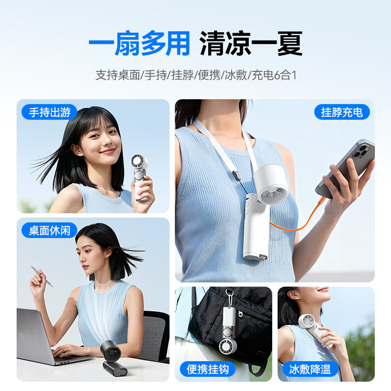 高速手持桌面挂脖风扇USB便携充电宝半导体制冷通勤运动旅行宿舍