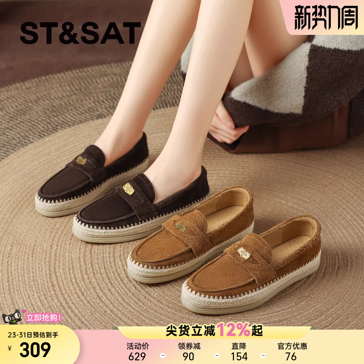 星期六复古头层牛皮厚底乐福鞋女2025新款秋冬真皮豆豆鞋软底单鞋