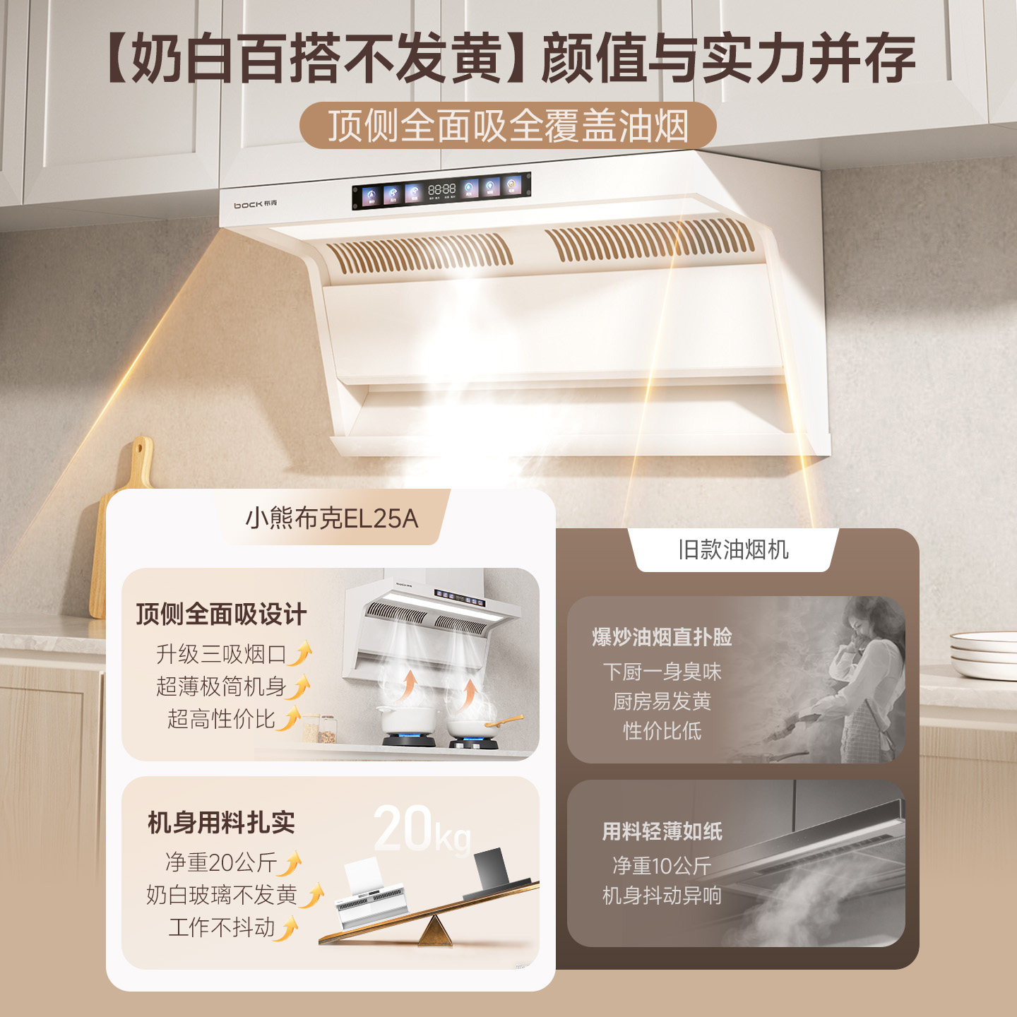 小熊旗下布克油烟机家用抽油烟机顶侧双吸大吸力白色吸油烟机套装