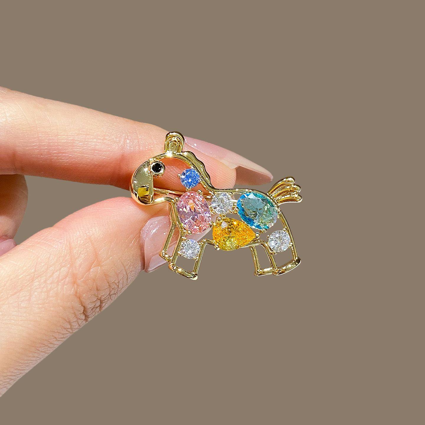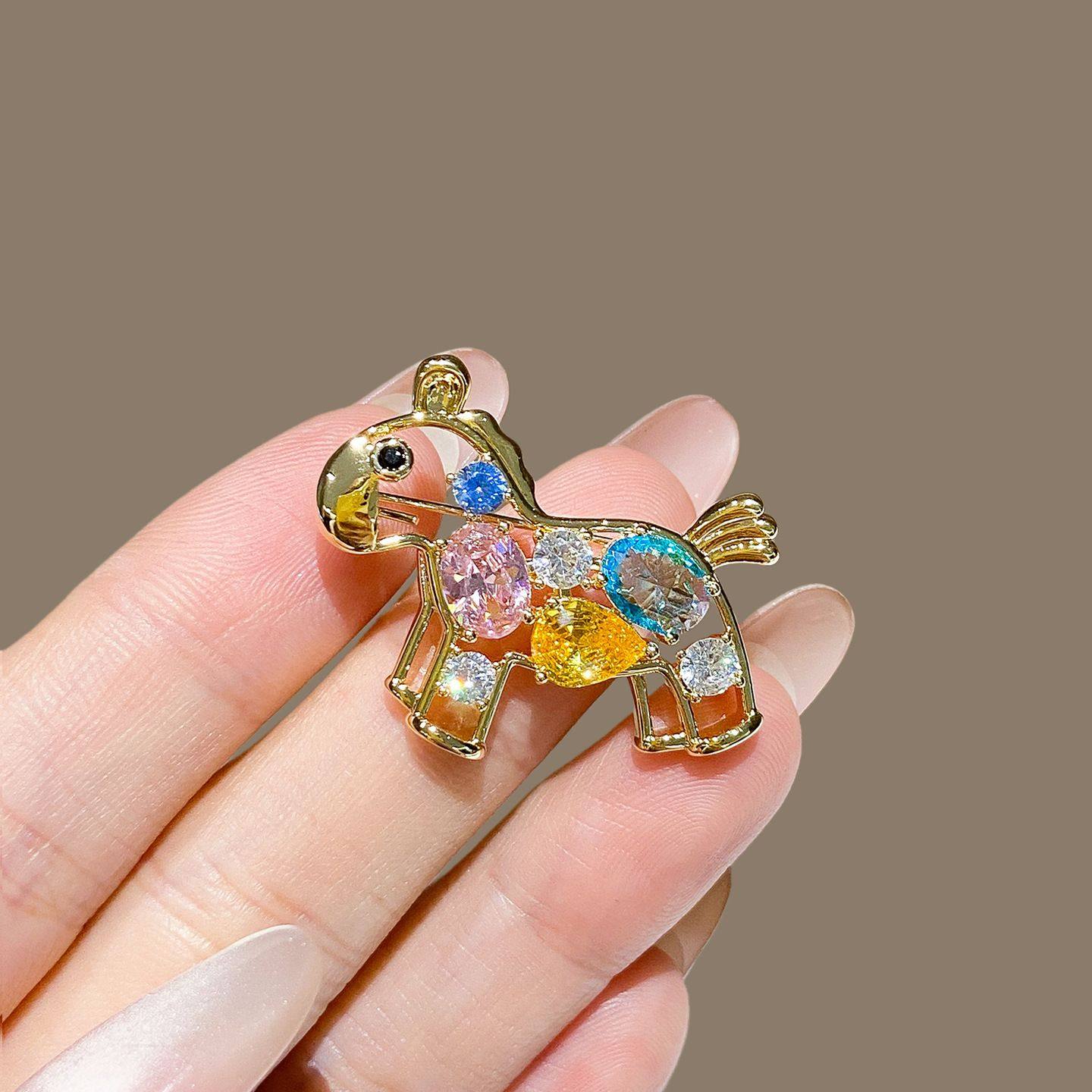 彩色水晶小马驹胸针女2025新款高级感设计感轻奢小众设计别针配饰