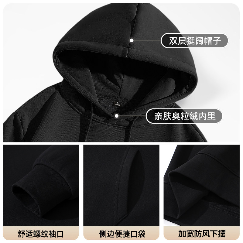 唐狮官方重磅奥利绒卫衣男款秋冬美式潮牌加绒加厚男生连帽外套YB