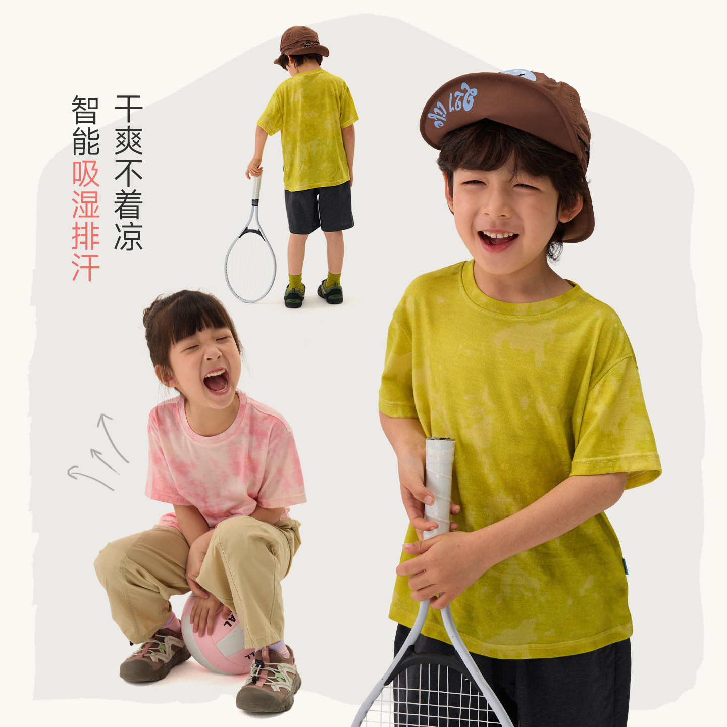 Q21美丽诺羊毛儿童短袖T恤吸湿排汗可机洗春夏扎染风上衣亲子款