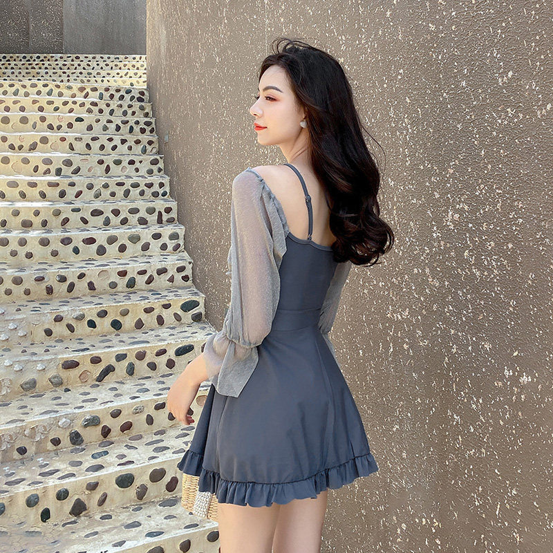 泳衣2026新款遮肚显瘦仙女范学生网红温泉连体长袖韩国ins保守Y17