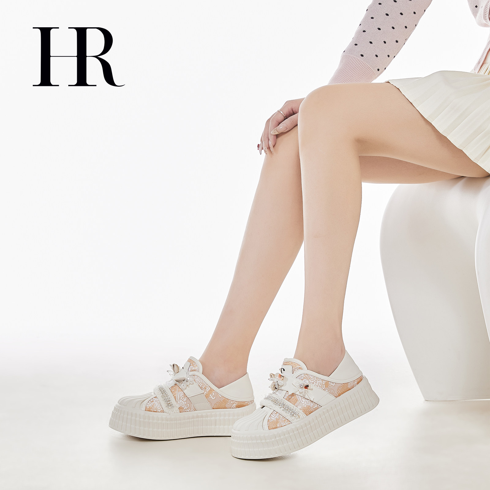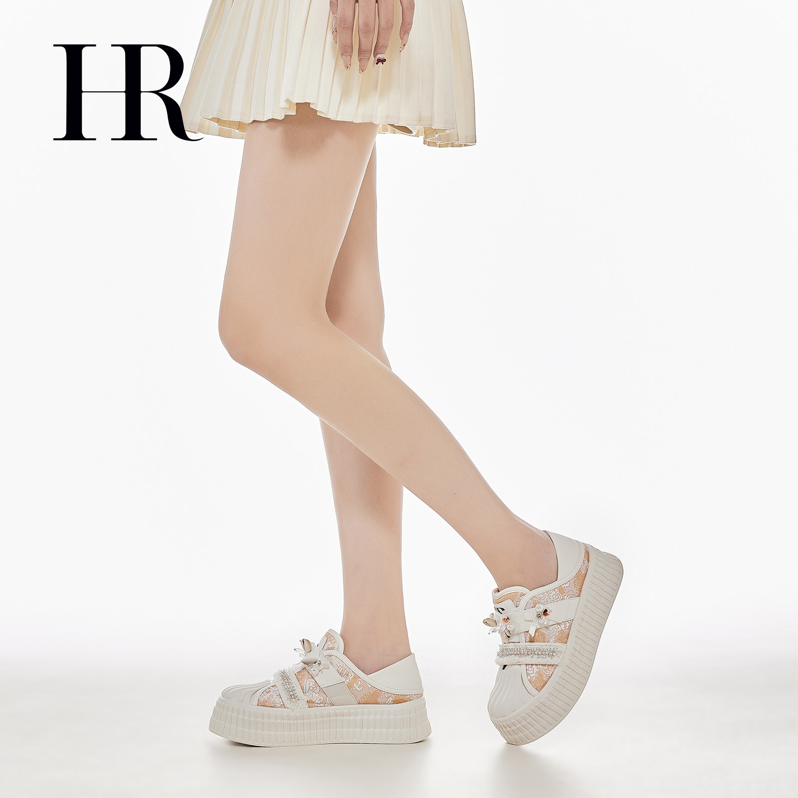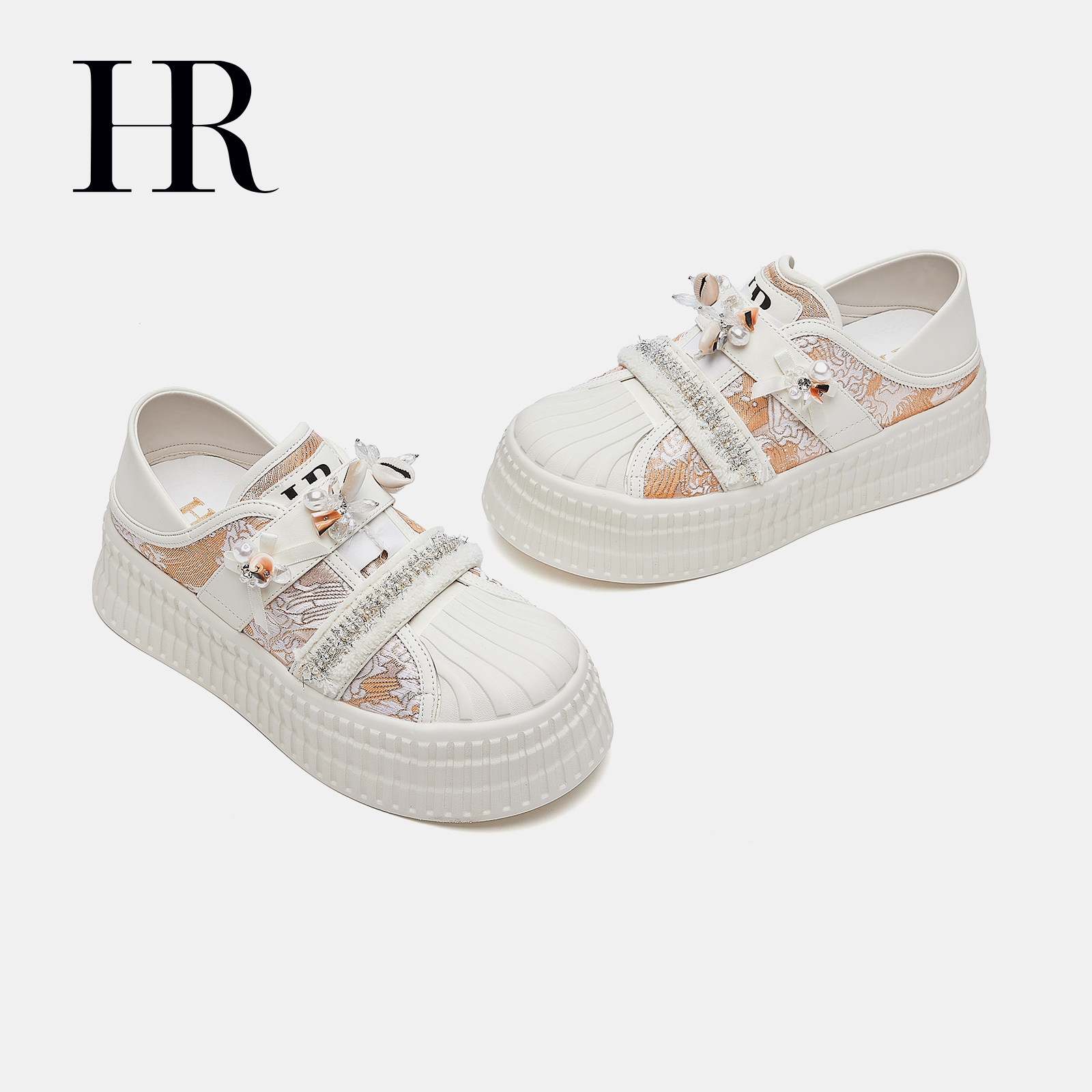 HR赫莲娜休闲板鞋2026春季新款女鞋子松糕底增高贝壳头刺绣小白鞋