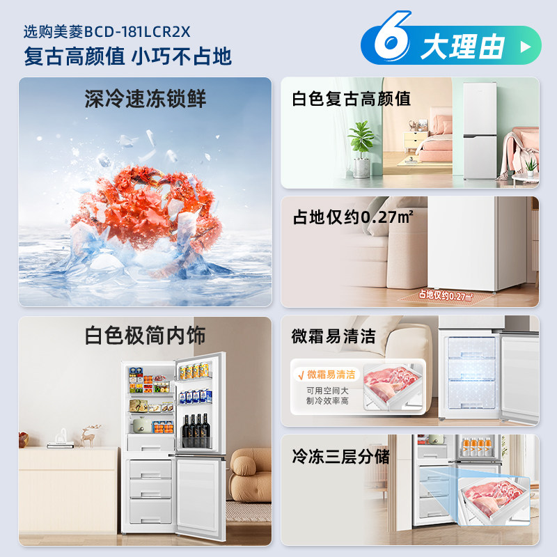 美菱臻鲜净181L复古小冰箱两门家用小型冷藏冷冻出租房宿舍电竞房