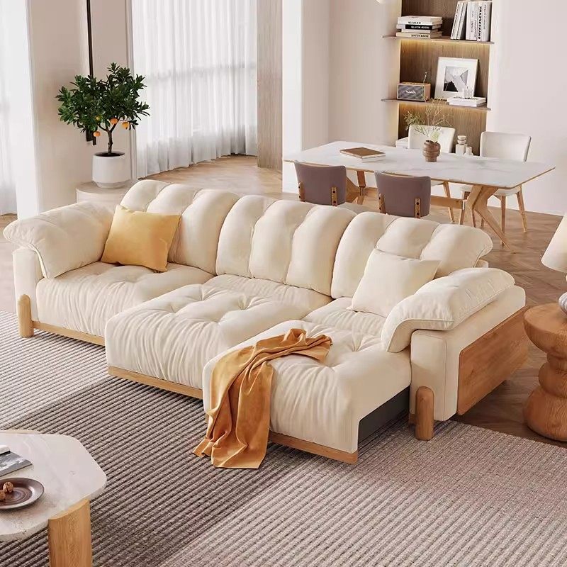 多功能伸缩电动沙发床奶油风客厅直排三四人位奶油风布艺沙发新款