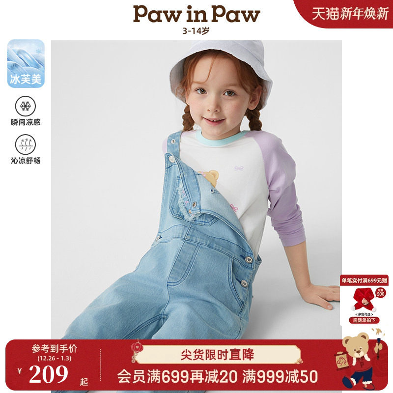 【冰芙美】PawinPaw卡通小熊童装25年春夏新款女童宽松牛仔背带裤