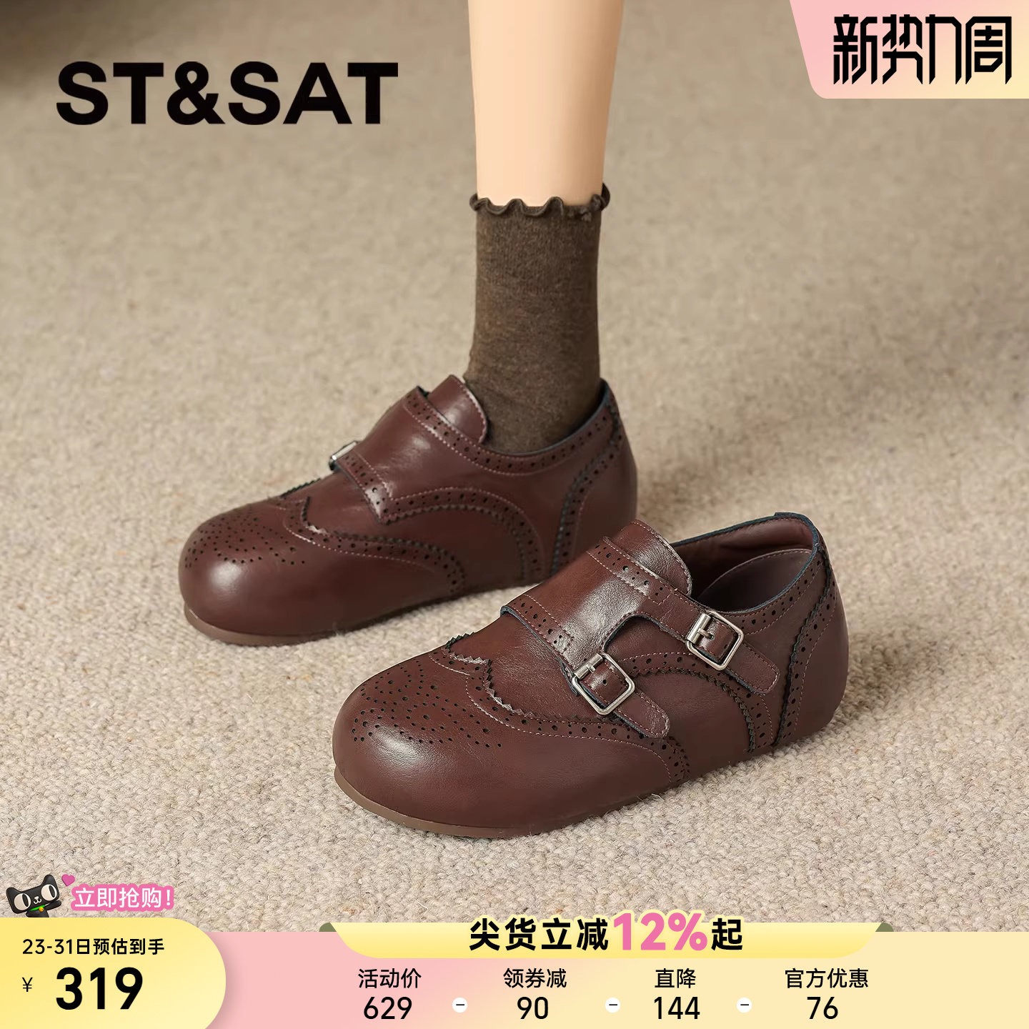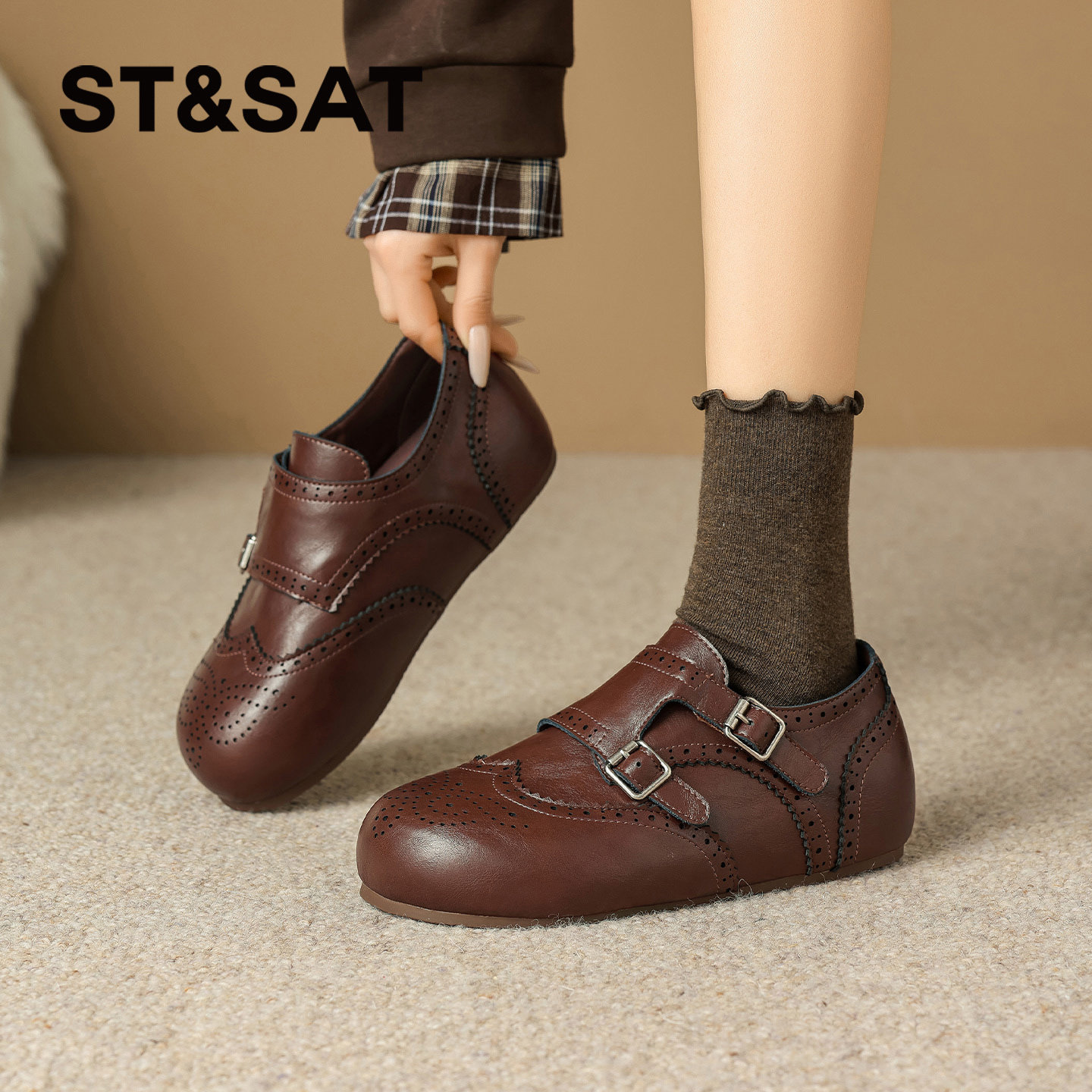 星期六布洛克勃肯鞋女年新款春季单鞋圆头百搭休闲软底小皮鞋爆款