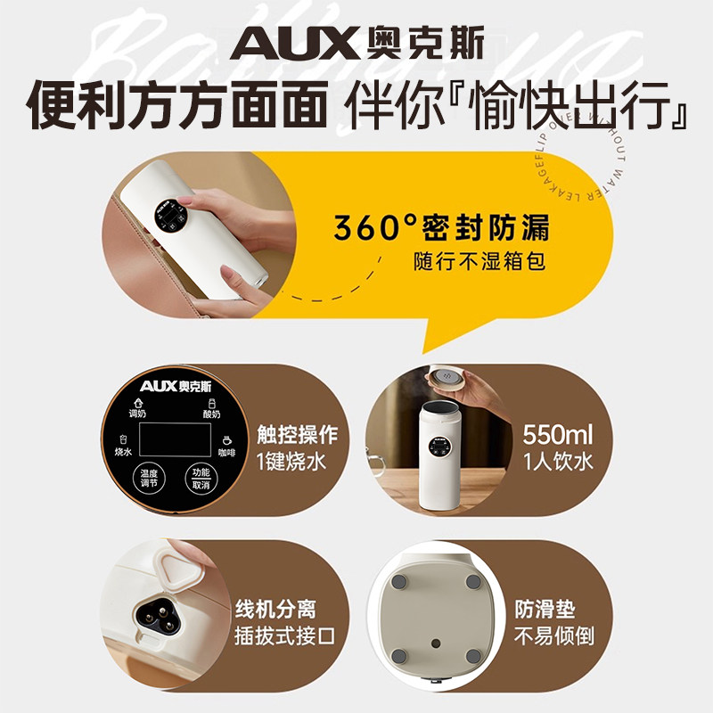 AUX奥克斯便携式烧水杯电热杯宿舍小型插电烧水恒温旅行酒店出差