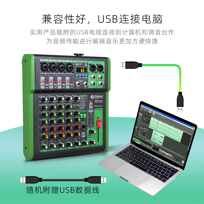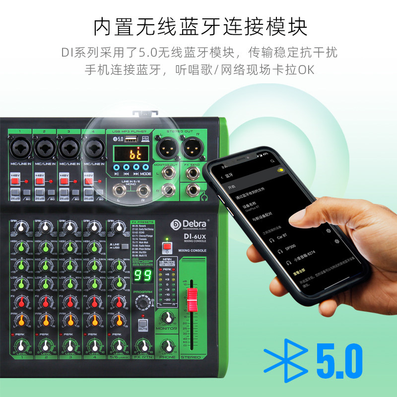 99DSP混响蓝牙5.0电脑录音声卡户外音响舞台乐器专业调音台混音器