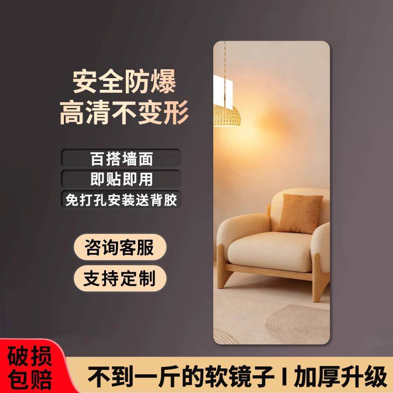 宿舍软镜子贴墙自粘高清家用镜面贴穿衣镜试衣镜宿舍贴柜门全身镜