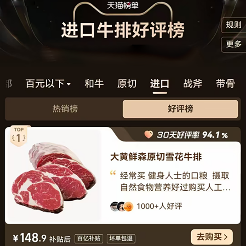 【李佳琦直播间】必胜客优选原肉整切西冷牛排肋眼牛肉官方旗舰店