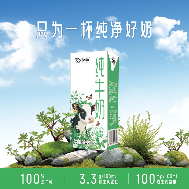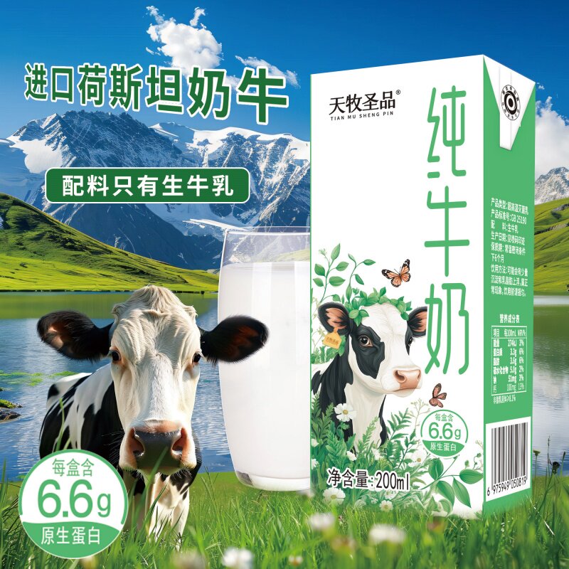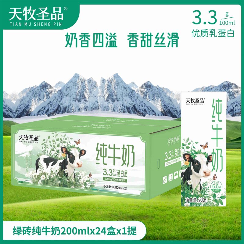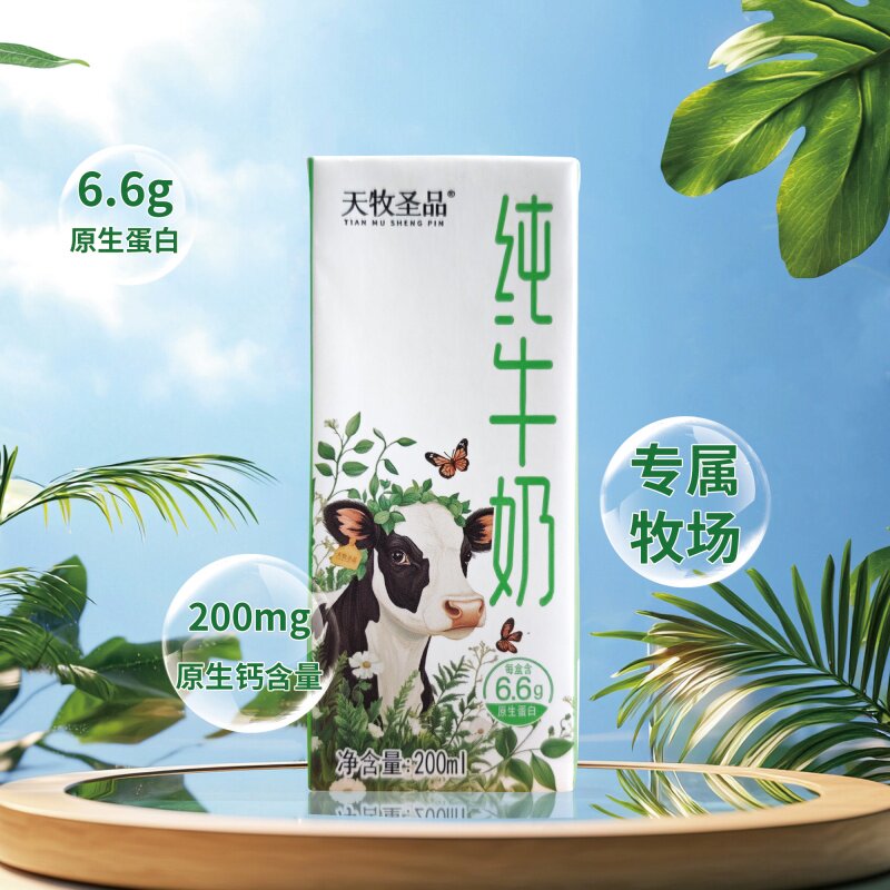天牧圣品3.3g蛋白纯牛奶营养早餐儿童奶200ml*24盒原生高原甄选