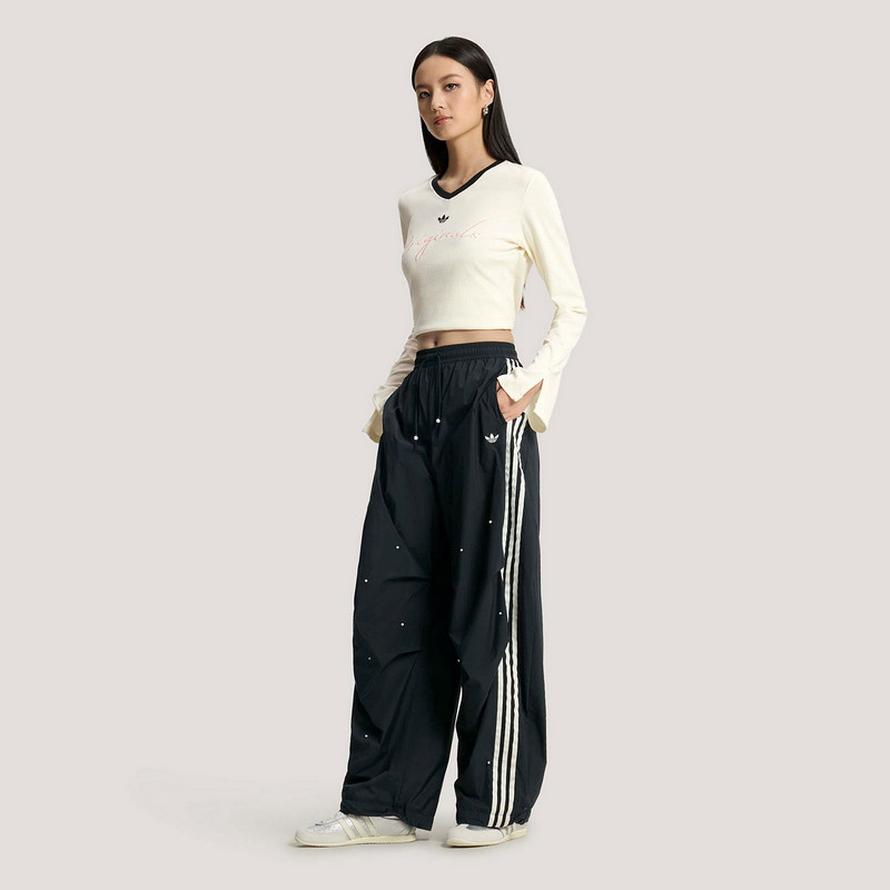 宋雨琦同款阿迪达斯三叶草珠饰点缀宽松阔腿女运动梭织长裤KS2865