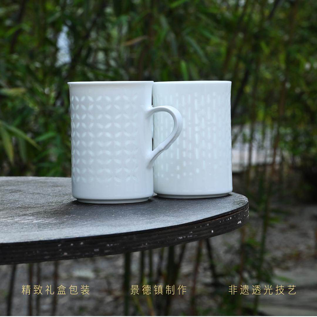 景德镇官方陶瓷玉柏铜钱竹逸杯送礼家用马克杯高温易清洗