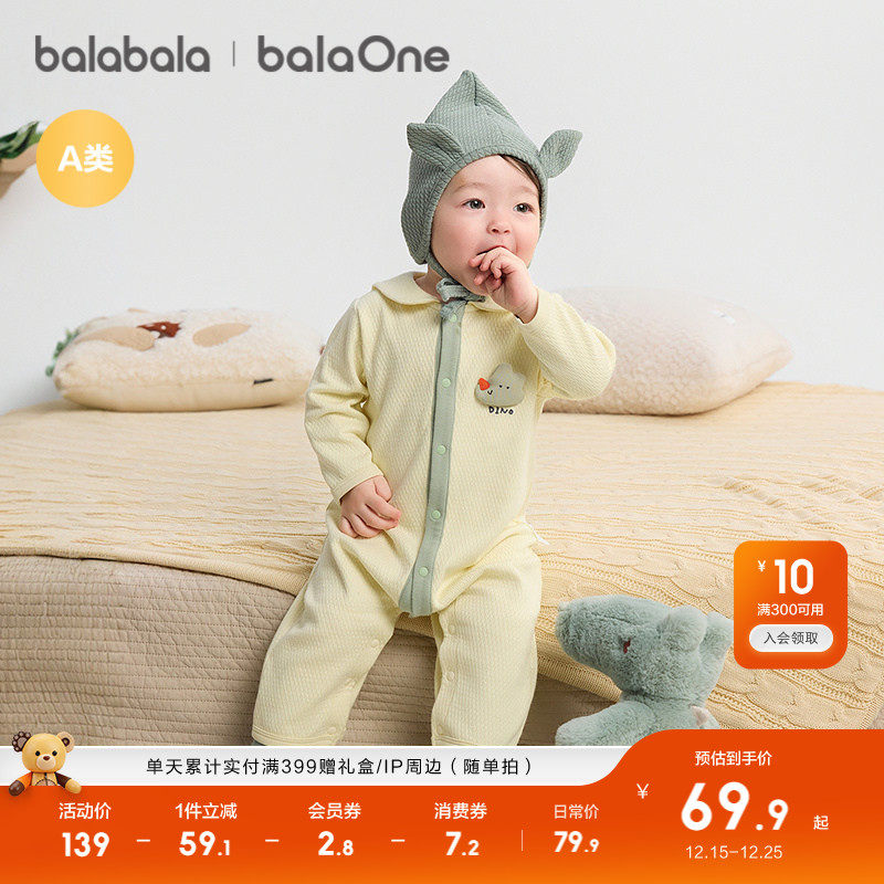 巴拉巴拉新生婴儿连体衣宝宝衣服爬爬服哈衣2025新款秋装可爱萌趣