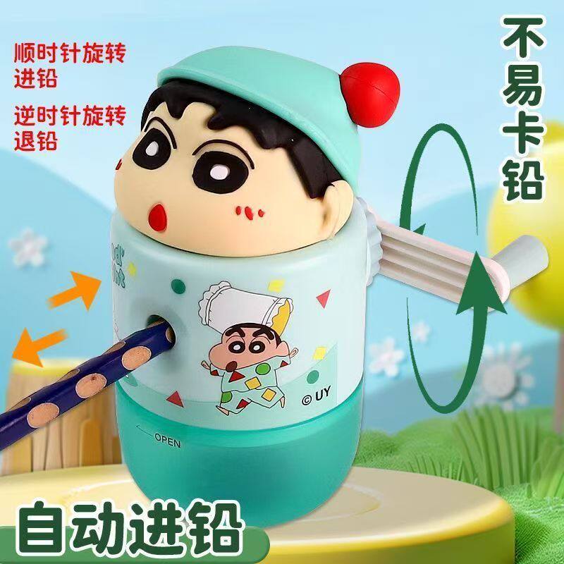 新款高颜值卡通蜡笔小新哆啦A梦手摇削笔机自动进铅学生可爱便携