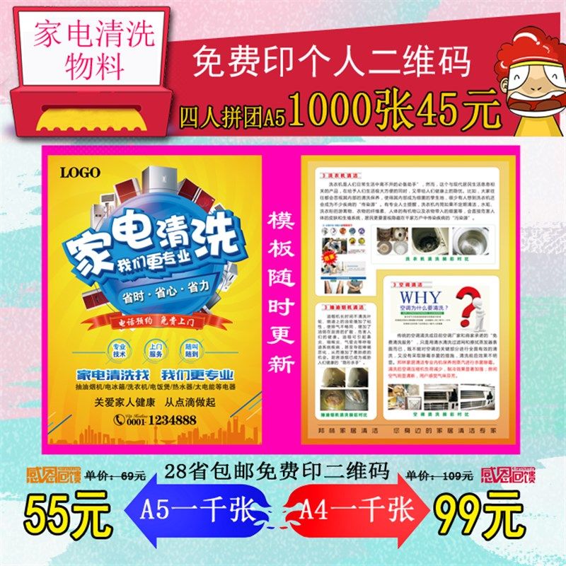 家电清洗保洁宣传单定制家政服务彩页传z单印刷海报订制贴纸设计