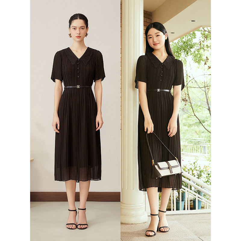 COCOBELLA简约气质黑色收腰极简风连衣裙女优雅短袖长裙FR3033-2
