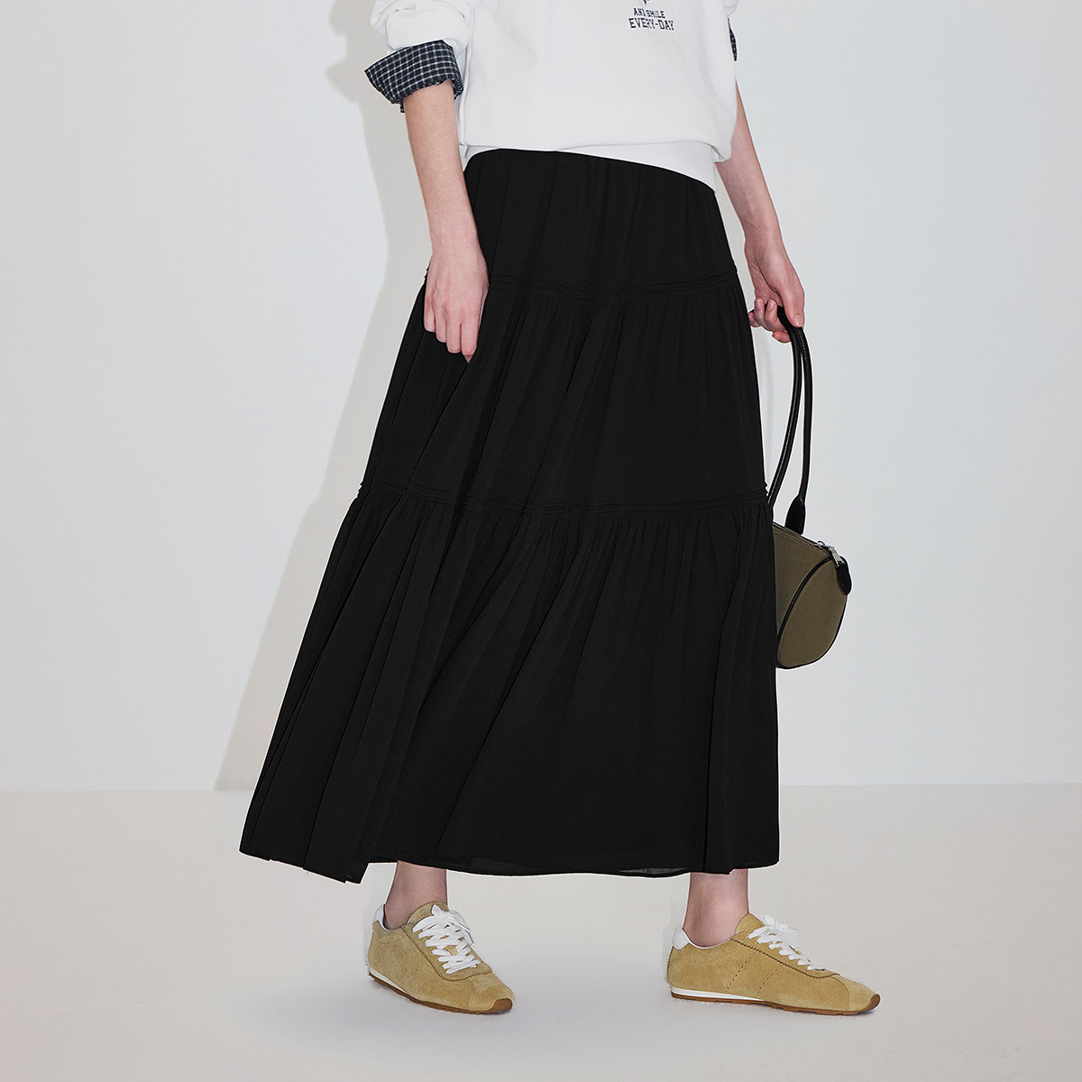 【新品】OCHIRLY欧时力 半身裙2026春季层接式中长款大摆伞裙a字