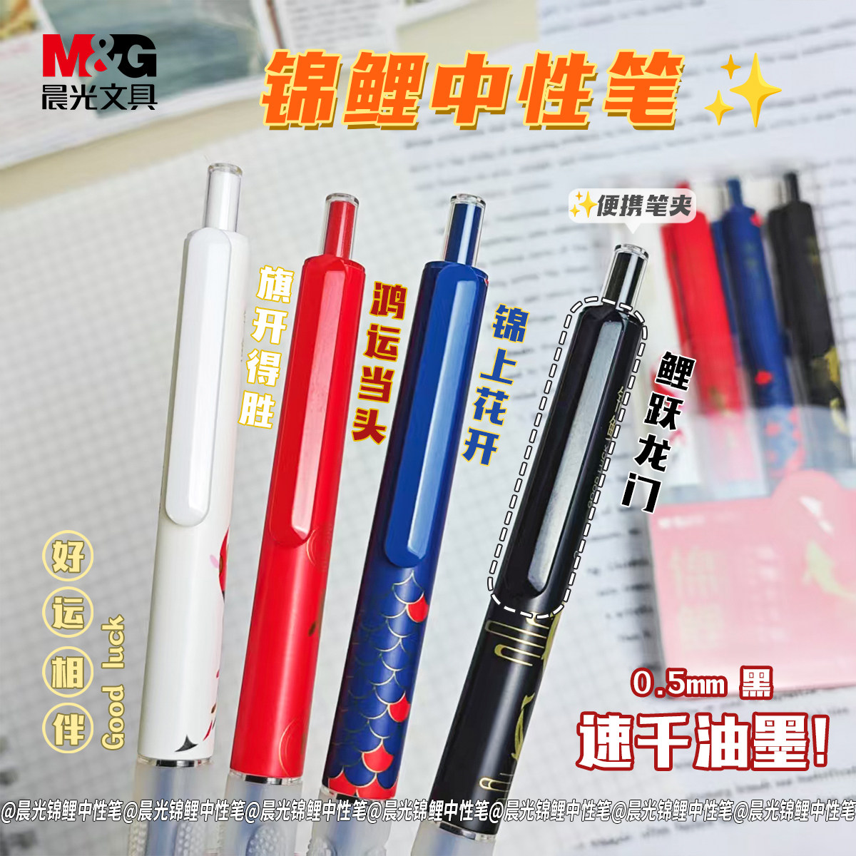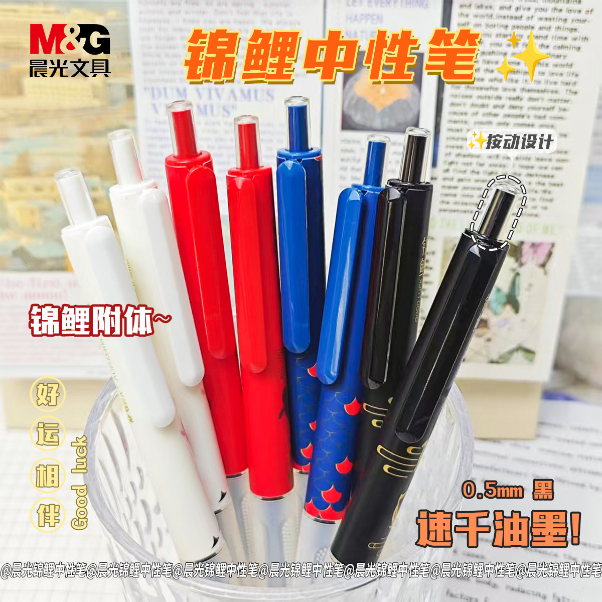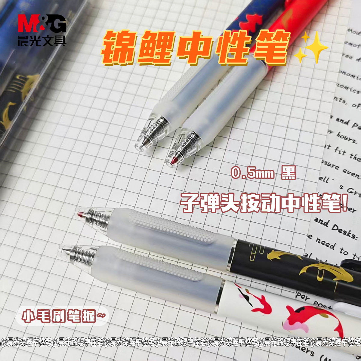 晨光锦鲤笔好运笔按动中性笔黑0.5mm加强型全针管大容量速干油墨学生专用笔2026热销刷题笔高颜值ins风