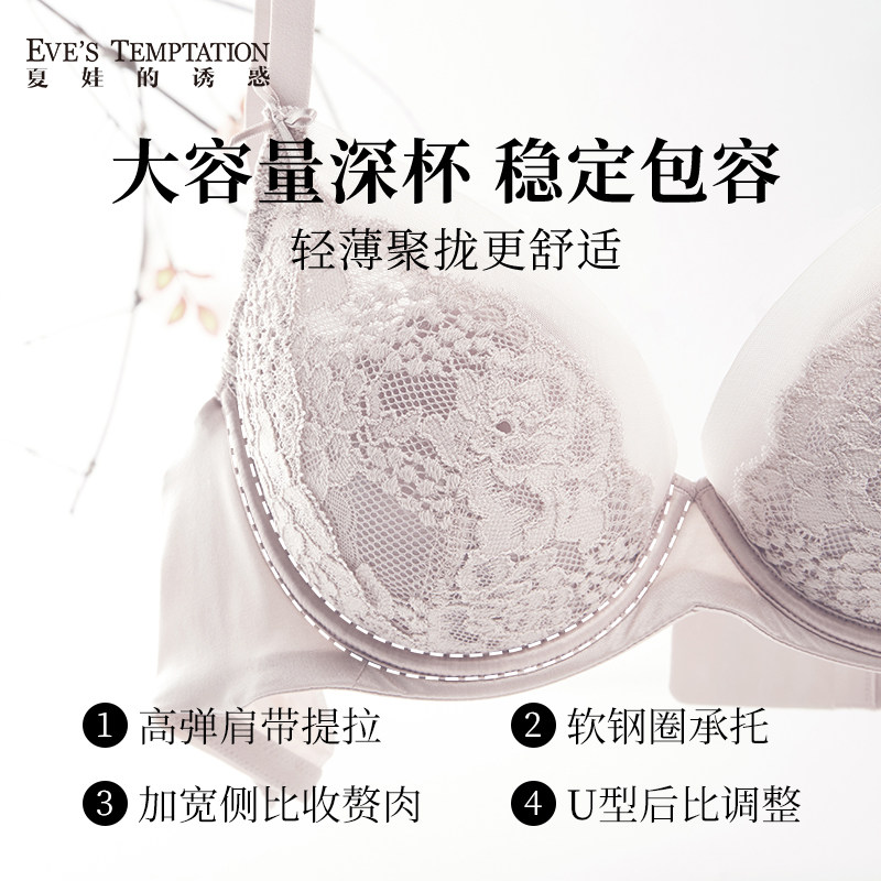 夏娃的诱惑法式蕾丝内衣女防下垂收副乳聚拢大码大胸显小胸罩文胸