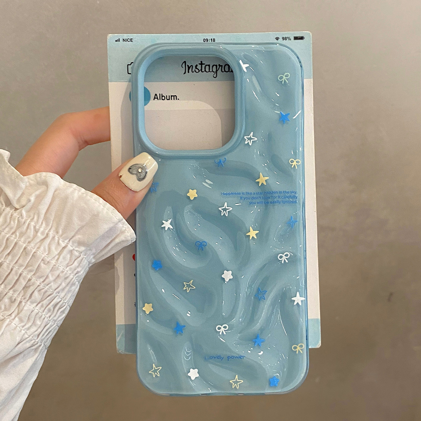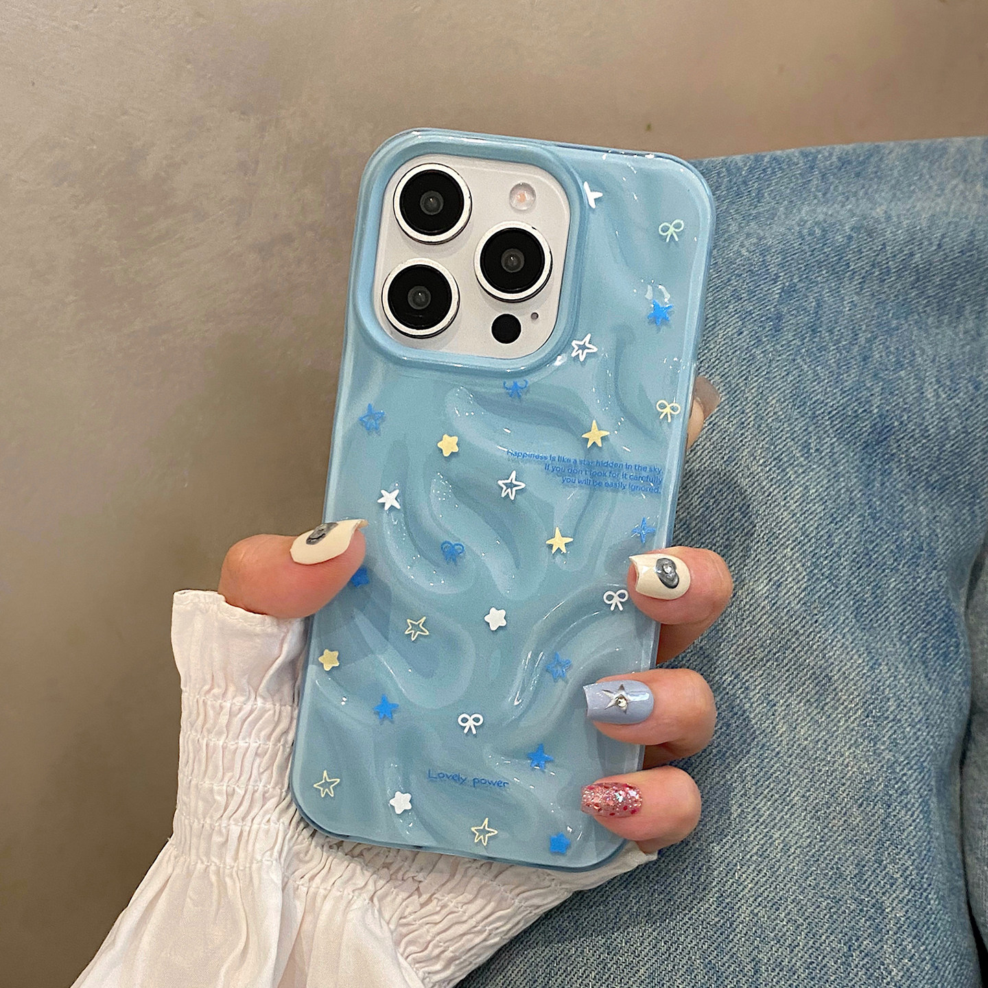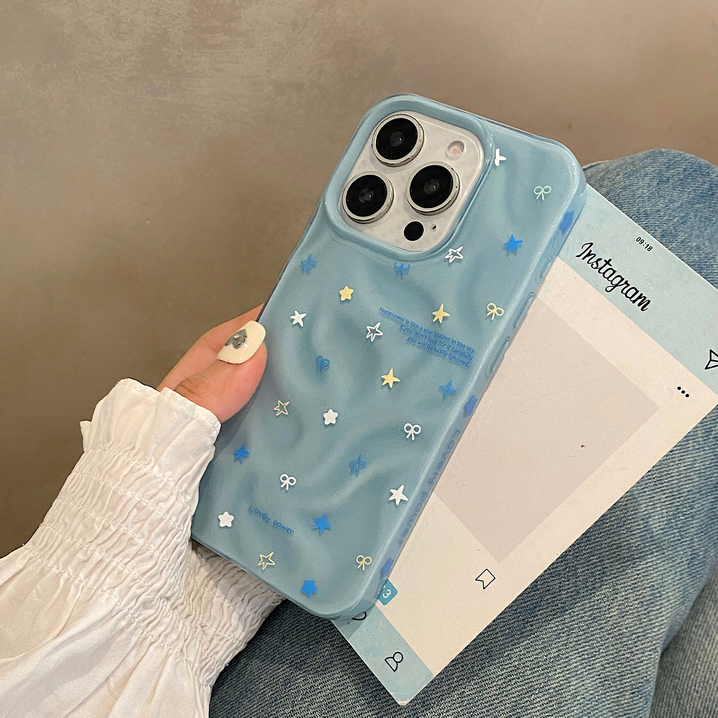 ins简约褶皱星星蝴蝶结适用于苹果16promax手机壳iphone15保护套14全包13防摔新款15pro小众max手机套高级感p