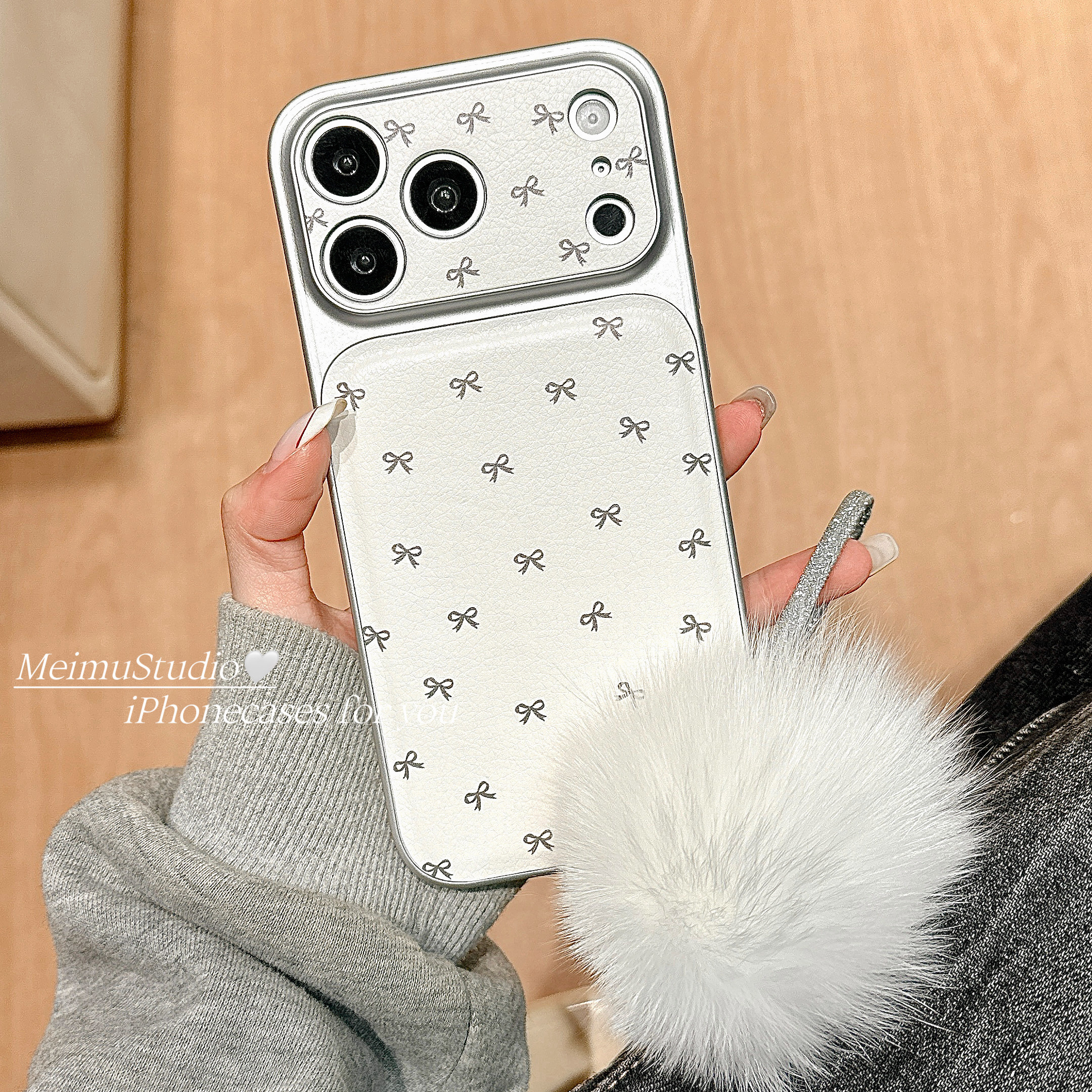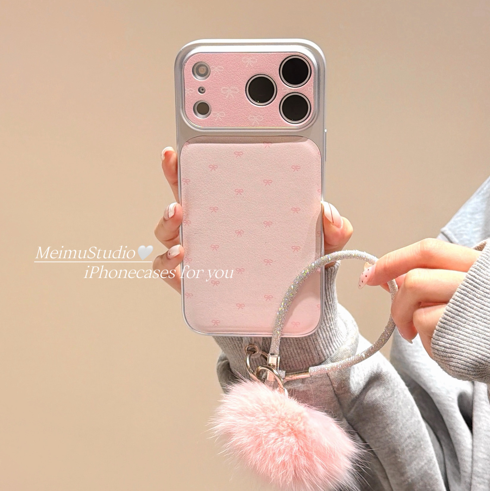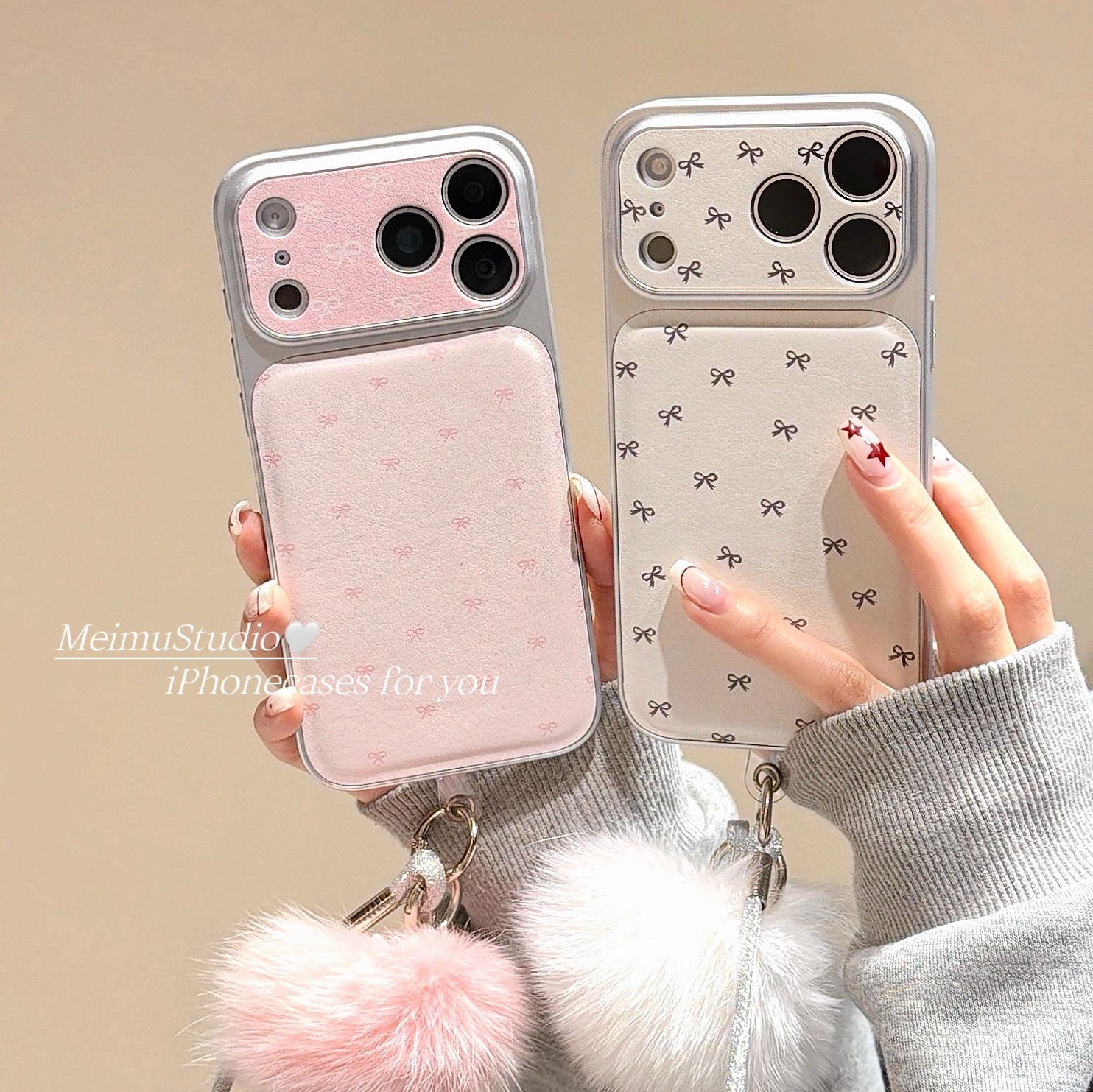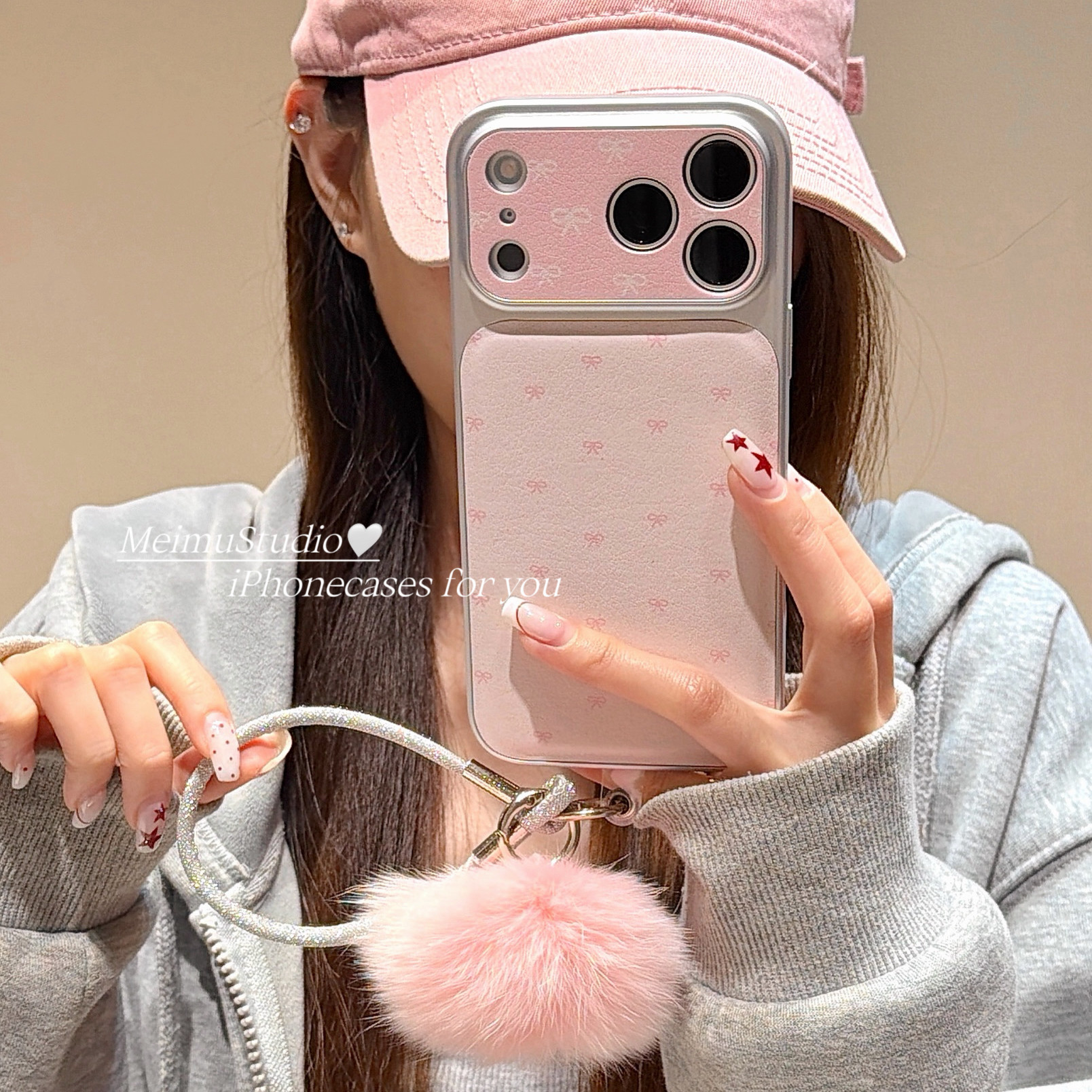 美牧韩系ins简约蝴蝶结适用iphone17pro手机壳苹果16promax新款15皮质挂绳17少女14电镀16高级15pm全包大视窗