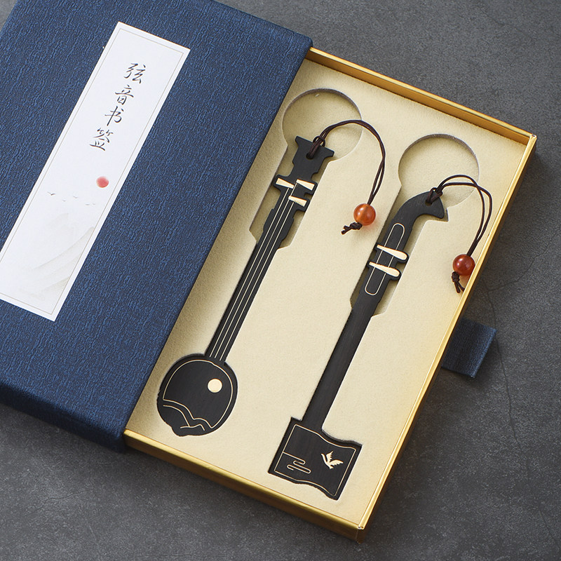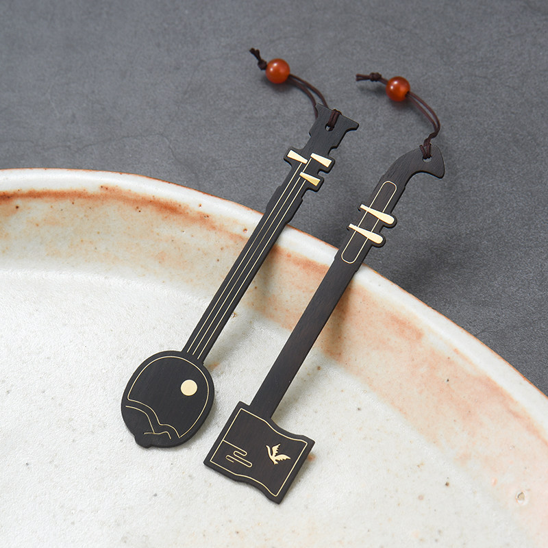 红木质复古典中国风乐器书签套装 精美创意黑檀木制个性简约文艺送学生用礼物刻字纪念品商务小礼品定制logo