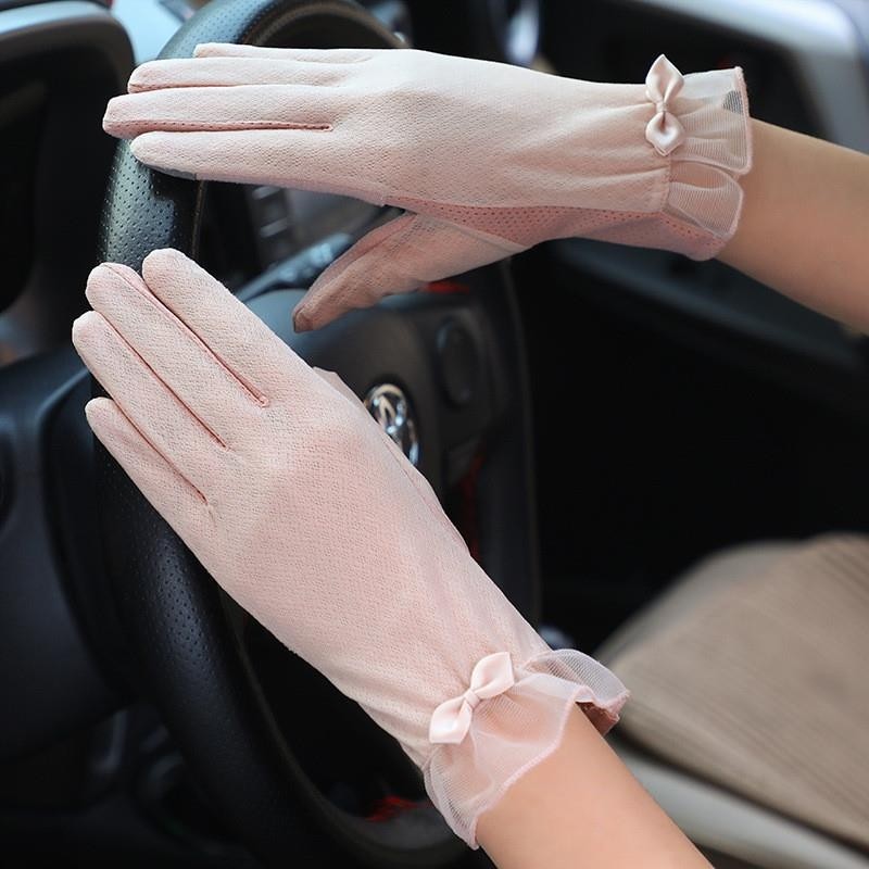冰丝防晒手套女士薄款夏天骑电车开车防紫外线触屏防滑蕾丝手套